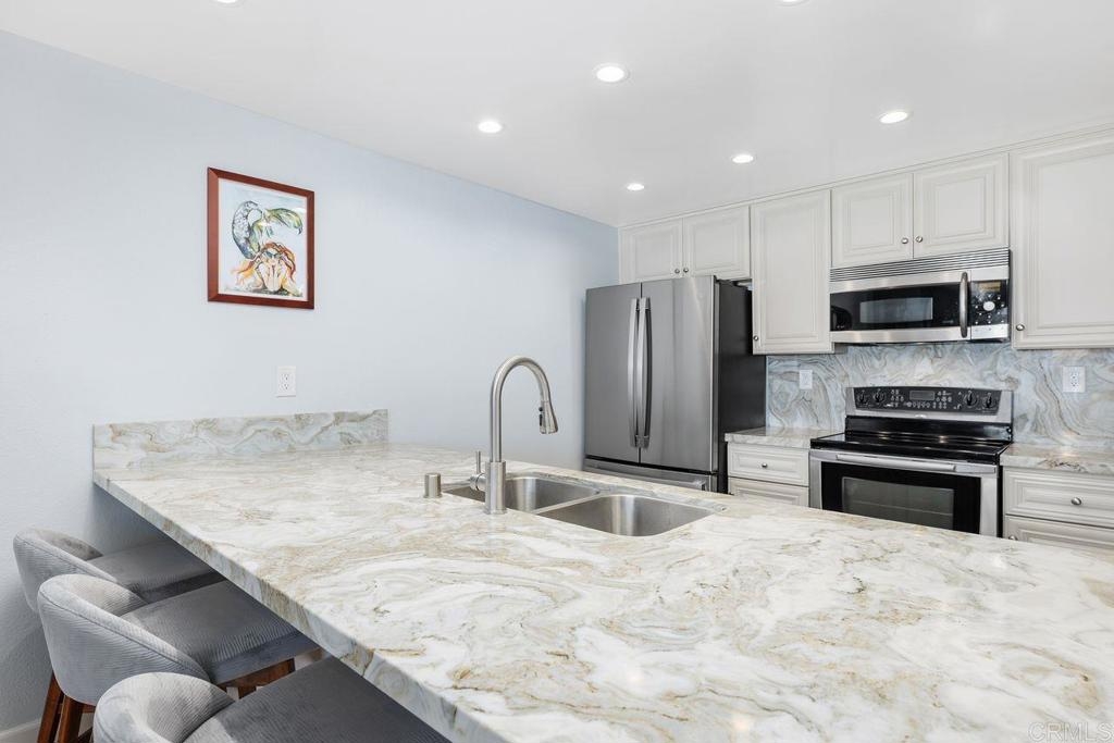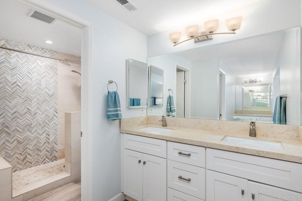 OPEN HOUSE SAT 9/7 & SUN 9/8 (1-4 PM). Welcome to your dream home! This beautifully remodeled 2-bedroom, 2.5-bathroom 1392 sq ft townhouse offers modern elegance and stunning views. The spacious interior boasts high-end finishes and thoughtful design, creating a perfect blend of comfort and style.The open-concept living area is ideal for entertaining, featuring sleek hardwood floors and large windows that flood the space with natural light. The updated kitchen is a chef’s delight, complete with newer appliances, ample cabinetry, and an eating bar perfect for casual meals. Wood grain tile throughout the house. Each bedroom is a serene retreat with generous closet space. The master suite offers a luxurious sanctuary with a beautifully renovated bathroom and access to a private balcony where you can unwind while overlooking the lush greens of the La Costa Golf Course. Additional amenities include a convenient half-bath for guests, in-unit laundry facilities, and a large, attached two-car garage with extra storage space. Enjoy the seamless indoor-outdoor living with private outdoor areas designed for relaxation and entertainment. This townhouse not only provides a high standard of living but also a prime location with breathtaking views of the La Costa golf course (17th hole), making it a true haven in a vibrant community. This is a well maintained complex with an extremely healthy reserve fund. Community Amenities include a pool, spa, sauna and 2 tennis courts.