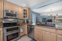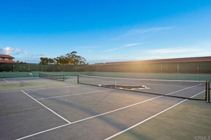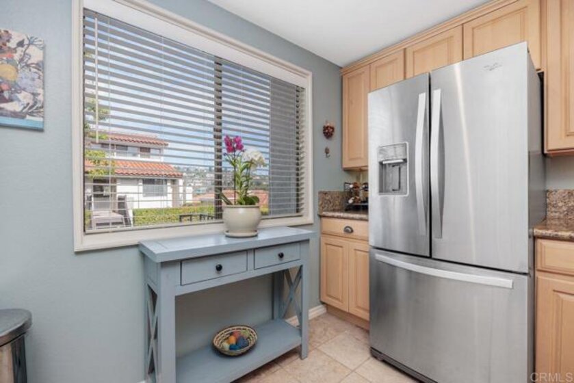 This turnkey 1-bedroom corner end unit on a quiet cul-de-sac is filled with natural light thanks to its abundance of windows. Thoughtfully upgraded throughout, the home features a spacious kitchen with a center island, gorgeous natural granite countertops, ceramic tile flooring, a rich brown quartz double-bowl sink, stainless steel appliances (including a double oven and refrigerator), a dedicated laundry closet with washer and dryer, ample counter space, a large picture window, and central forced A/C. The pass-through bar opens to a generous dining area and a step-down living room appointed with a cozy fireplace, ceiling fan, luxury vinyl wood-plank flooring, recessed lighting, and sliding doors leading to a private patio. A custom barn door introduces the ensuite bedroom, which offers a ceiling fan and its own sliding doors to a large private patio—ideal for morning coffee or a quiet afternoon retreat. The ensuite bath includes a double vanity, tub/shower combo, and a spacious walk-in closet. A separate guest powder room adds additional convenience. With three outdoor patio spaces, you can truly embrace the quintessential SoCal indoor-outdoor lifestyle. Additional highlights include gated underground parking with a reserved space and storage. This Mediterranean-inspired community sits on the edge of the world-famous La Costa Resort, just 2.5 miles from the beach and moments from popular restaurants, shops, movie theaters, grocery stores, and direct access to I-5. HOA dues include water, trash, sewer, exterior maintenance, landscaping, and access to resort-style amenities—pool, spa, sauna, and tennis courts.