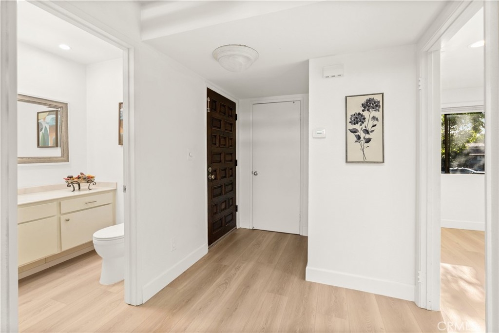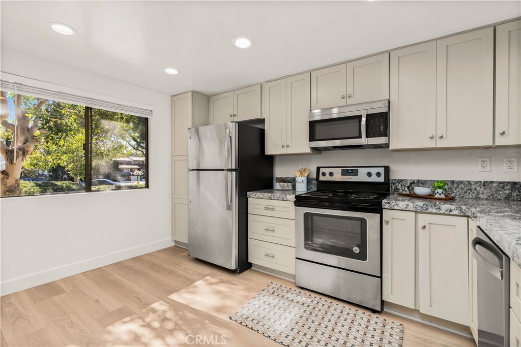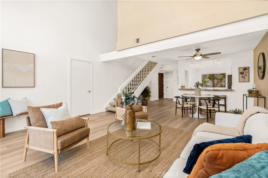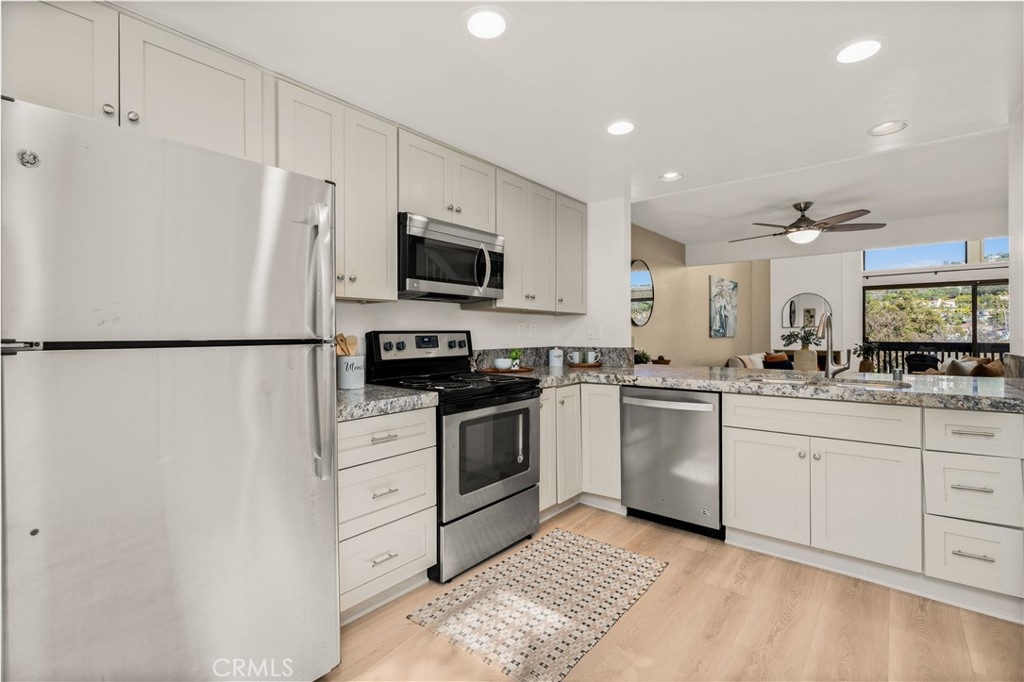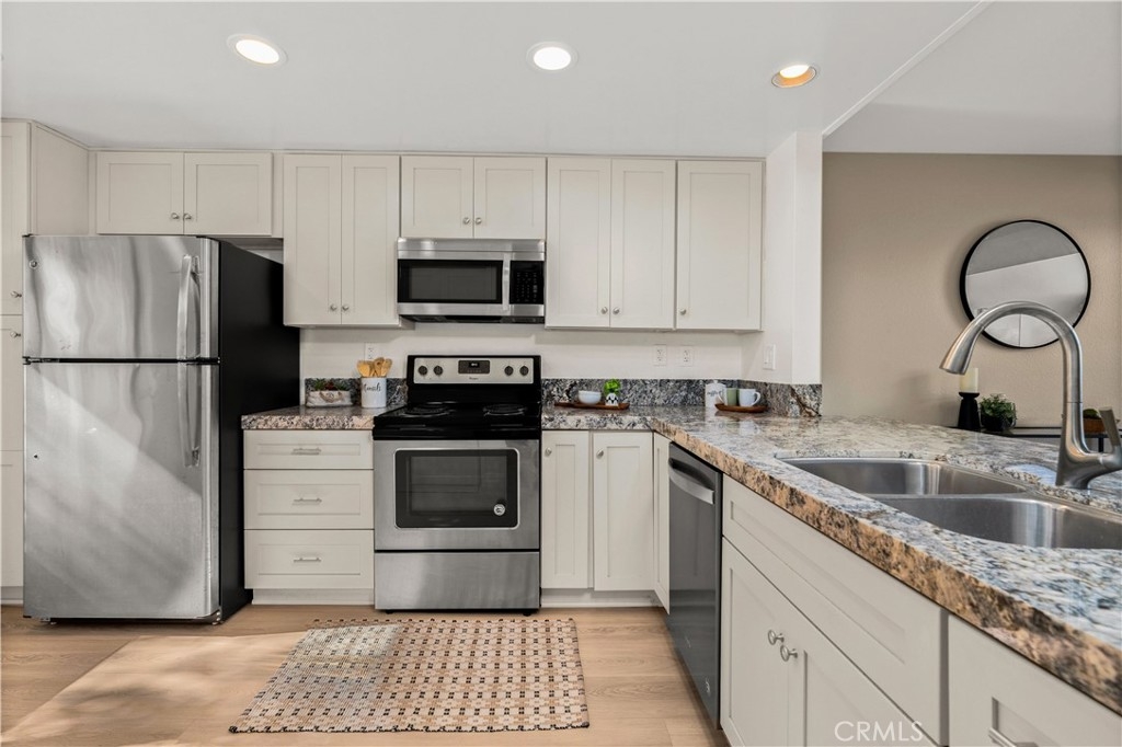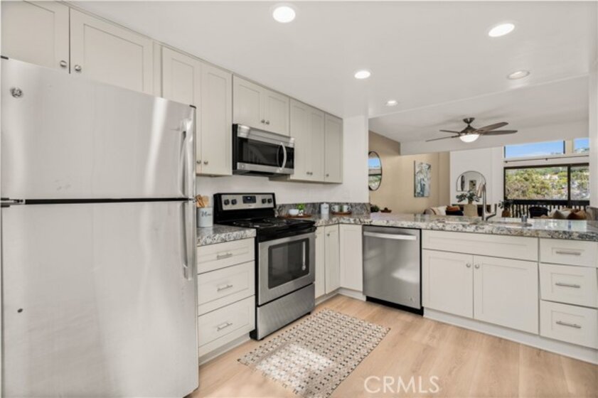 Spectacular golf course views from the living area, patio and primary bedroom in this charming turn-key home. Vaulted ceilings in all rooms enhance the open, airy, feel complemented by abundant light from floor to ceiling windows/doors leading to a private balcony overlooking the fairways and distant hills. Recently upgraded this home features new luxury vinyl flooring, a desirable split bedroom layout with the primary suite on the main level and an open floor plan. The upgraded kitchen offers beautiful premium granite countertops, recessed lighting and laundry hook ups in the kitchen closet. The primary bathroom has been fully renovated features a dual sink vanity recessed lighting and a large walk-in closet. The upper-level bath/shower showcases authentic Mexican tile and an oversize walk-in closet. The expansive upstairs bedroom includes new carpeting, and windows that capture refreshing ocean breezes from the inlet. Located in a quiet, well-managed community residents enjoy resort style amenities, including a pool, spa, sauna, and tennis courts; trash services included dedicated underground parking is located directly across from the unit. Minutes to the beach I-5 and shopping. What’s Special:- Spectacular golf course views from living and primary bedroom Vaulted Ceilings in all rooms Split bedroom layout with master on main level Upgraded kitchen and baths and flooring Huge walk-in closets Resort style amenities - pool spa sauna and tennis courts