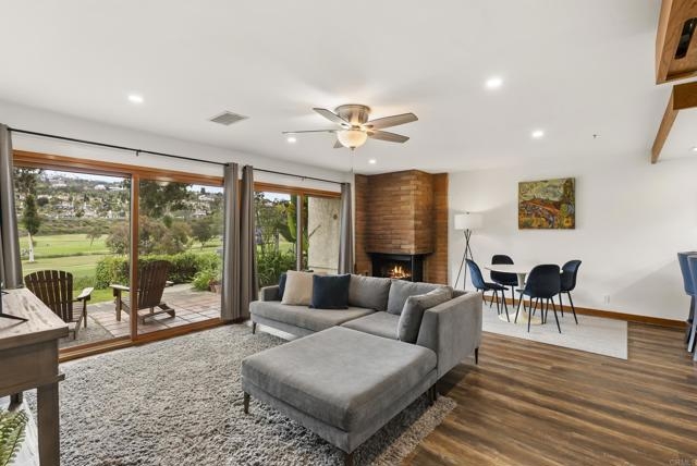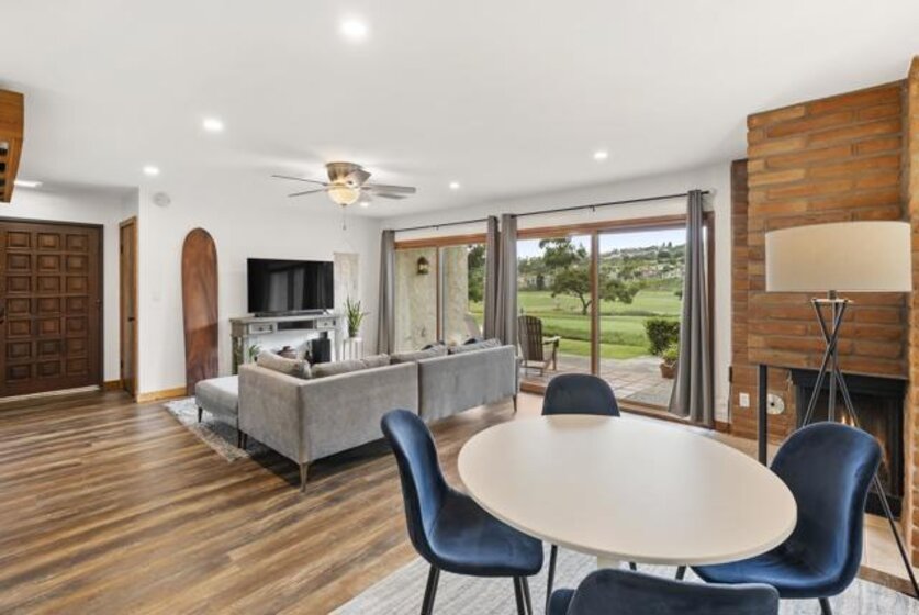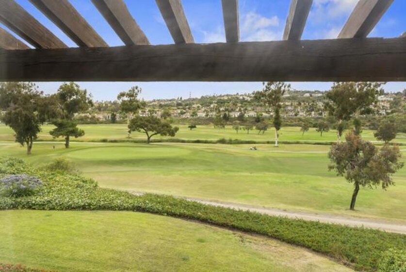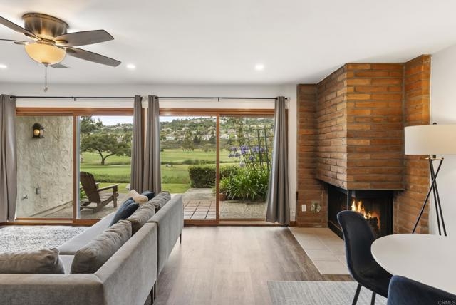It’s truly just so good. This chic and sophisticated two-story end unit sits above the 16th hole of The Omni Resort’s “Legends” Golf Course, offering serene views from every room. Tucked into the lowest northeast corner of the complex, it’s one of only ten units that face the grassy edge along the course—providing a rare sense of spacious, peaceful privacy. Beyond the glowing stained glass window is a warm and inviting interior, brimming with artistic possibility. The main living area is anchored by a beautiful wood-burning fireplace adorned with adobe bricks—reminiscent of those commonly found throughout Mexico’s exquisite modern architecture. Two sliding glass doors create a wall of glass that opens out to the patio—perfect for al fresco dining or morning coffee with a view. Upstairs, the spacious, sunlit primary suite features a large picture window with a built-in bench, a sliding glass door to a private balcony, vaulted ceilings, a custom walk-in closet, a generous dressing area, and a large soaking tub. The guest bedroom is equally charming, with built-in cabinets and bookshelves, a convenient pull-down desk, and an enchanting loft. Located within the award-winning Encinitas Union School District and the San Dieguito Union High School District. The community features two tennis courts, a pool and spa. The unit includes one assigned parking space in the gated garage. Water and trash are covered by the HOA fees.
