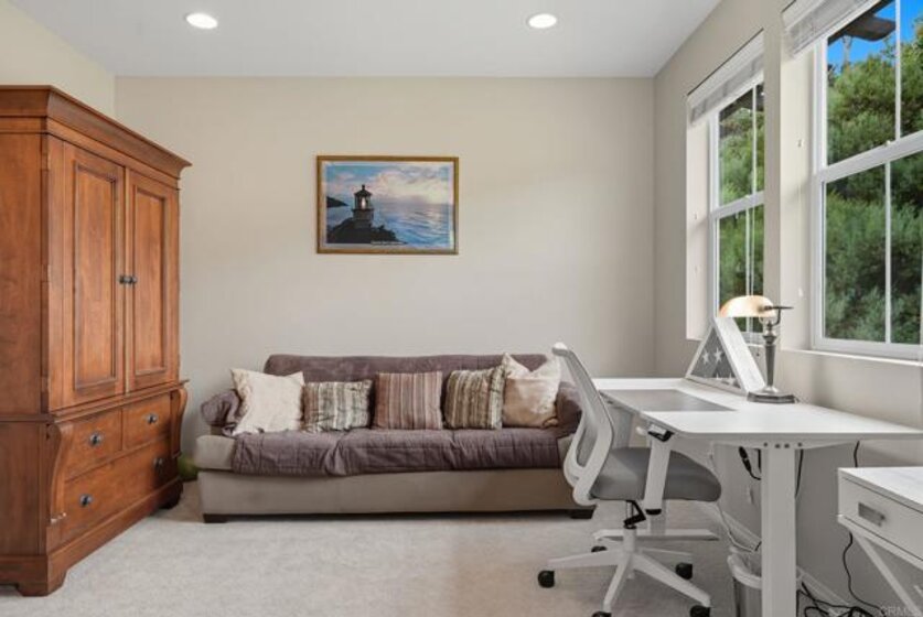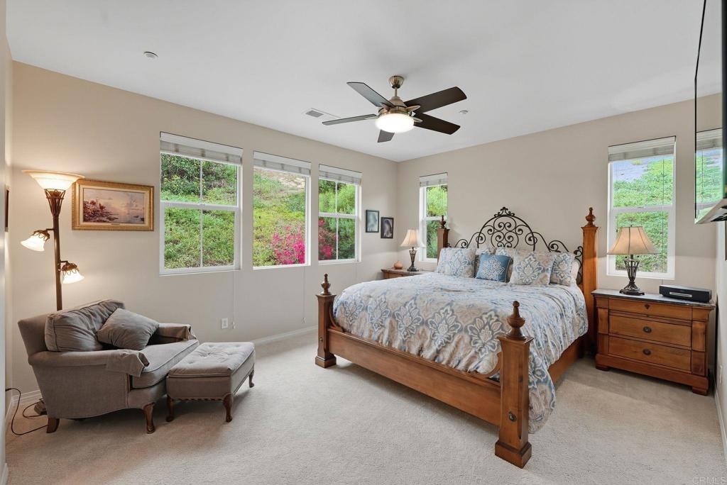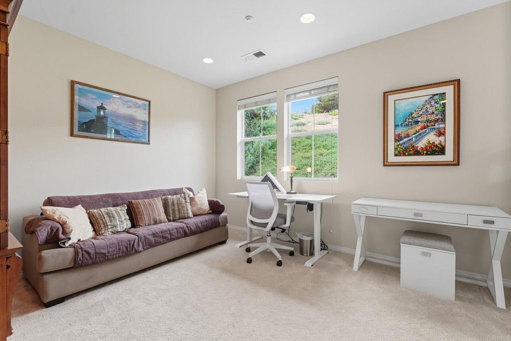 Welcome to Avellino at La Costa Greens, where style and convenience meet resort living. This 3 bedroom, 2.5 bath, two-level, end-unit townhome offers 1,730 sq. ft. with a private entrance, full-size driveway, and attached 2-car garage. The open layout features abundant natural light, a versatile loft, and a rare wrap-around yard with turf, paver patio, and auto-retractable shade—perfect for everyday living or entertaining. The spacious primary suite includes dual vanities, a soaking tub, glass-enclosed shower, and walk-in closet. As a resident, you’ll enjoy access to the exclusive Presidio Club with pool, spa, gym, tennis and pickleball courts, event space, and greenbelts. Ideally located minutes from Omni La Costa Resort, golf, Alga Norte Park, shops, dining, and Carlsbad and Encinitas beaches, this home offers the very best of North County coastal living.