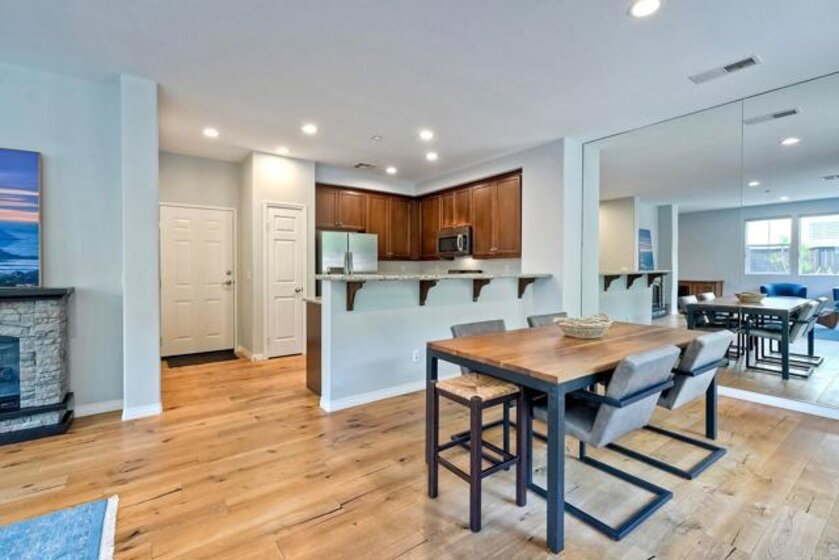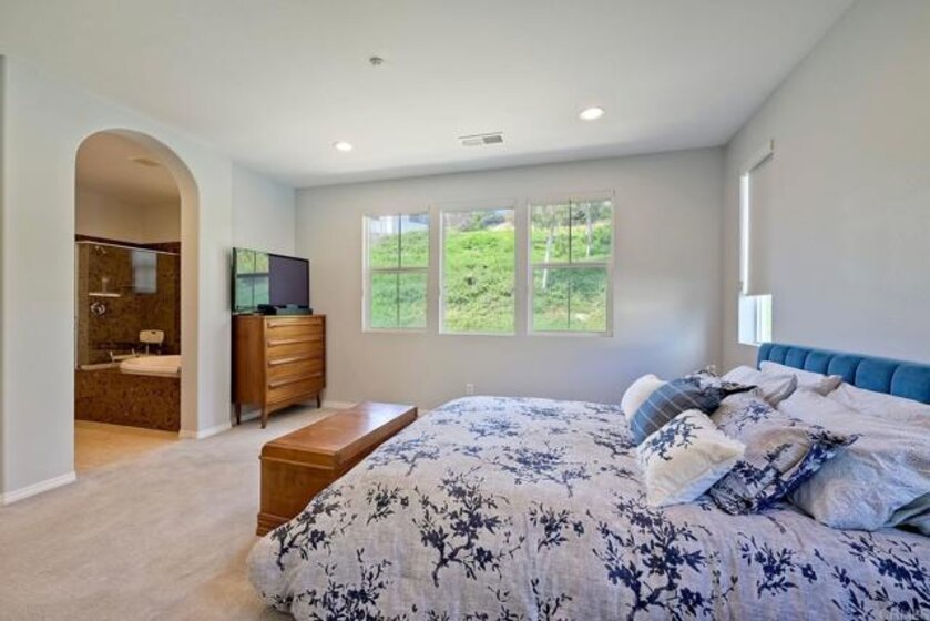 Beautifully upgraded, move-in ready townhome in highly desirable La Costa Greens-Avellino. This home is open, light & bright and features hardwood flooring downstairs, recessed lighting throughout, an oversized private back yard with pavers and drought tolerant landscaping. Upstairs you will find the primary bedroom with a large walk-in closet, plus 2 bedrooms, 2 full baths & a laundry room. The large back yard is perfect for bbq's with family & friends with enough space for the kids or dogs to play. Residents have access to "The Presidio" which offers a large pool with spa, gym, clubhouse, tennis & pickleball courts, tot lots & open space. Close to Alga Norte Park, shopping, restaurants, Vons, coffee shops, library, & Cinepolis luxury cinemas. Carlsbad schools! MUST SEE!!