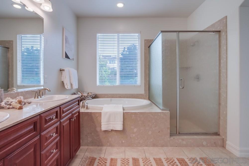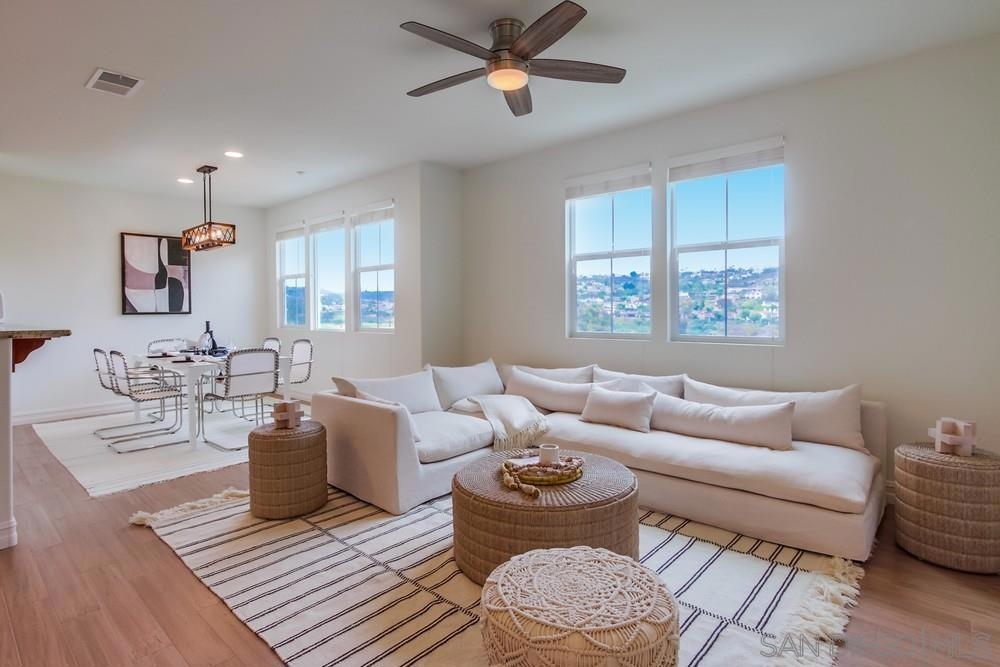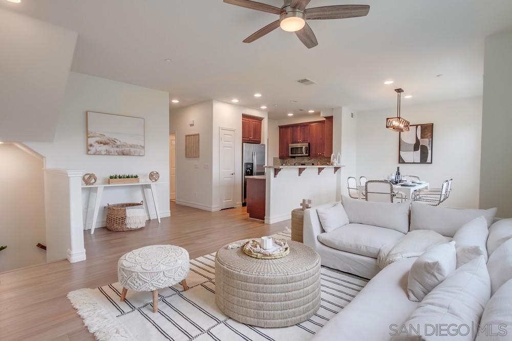 Absolutely stunning panoramic golf course views from this recently renovated townhome overlooking the La Costa Golf Course! Located in the Carlsbad school district, this amazing 2216 square foot home has been beautifully upgraded with hardwood floors, stone countertops, stainless steel appliances, LED lighting, custom closets and more! Situated in the absolute BEST location in the complex, this light and bright home offers so much, including a large golf course-view patio for wonderful indoor/outdoor enjoyment. Perfect for multigenerational living, this property offers three large bedrooms upstairs, and on the first level, an enclosed optional 4th bedroom with its own private bathroom and kitchenette. The beautiful main bedroom offers a large ensuite bath with soaking tub, a private balcony and a huge new custom closet. The third floor offers two additional bedrooms, a separate bath and loft area with amazing views of the golf course and beyond. Residents have access to all the amenities at the stunning Presidio in the heart of La Costa Greens, which include a pool/spa, gym, clubhouse, tennis & pickle-ball courts, tot lots & more! Close to shops, restaurants, walking trails, beach and more. This home offers everything you might want for living the best of the San Diego lifestyle now and in the years to come!