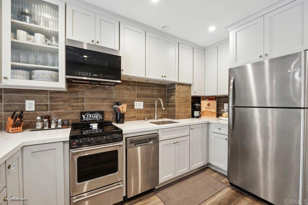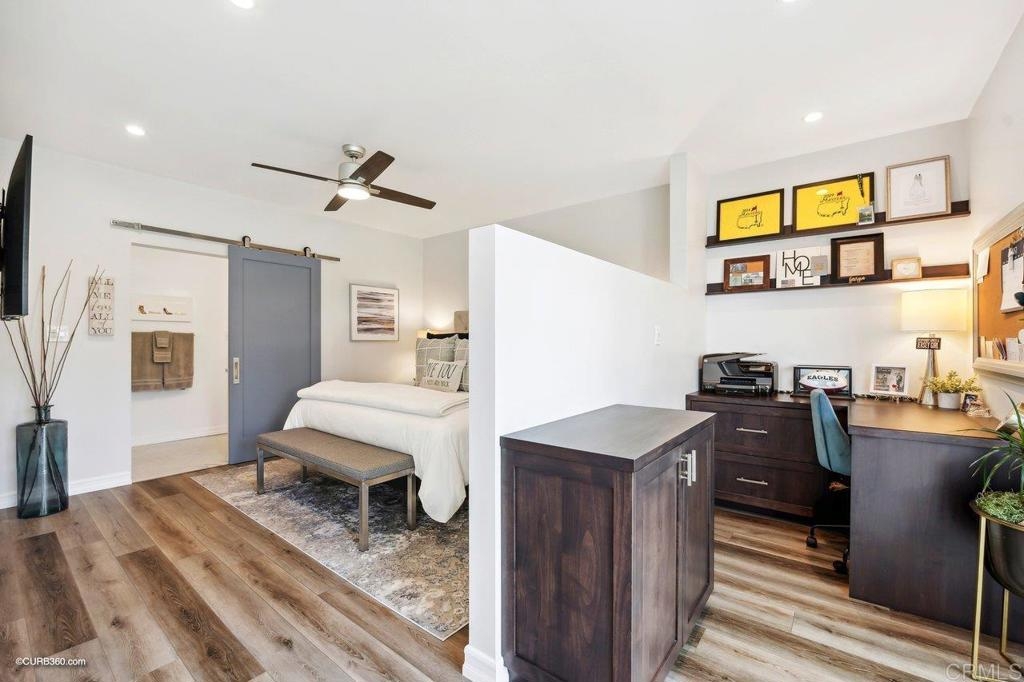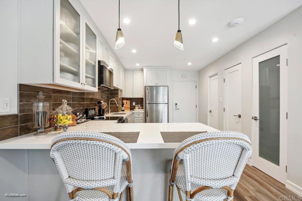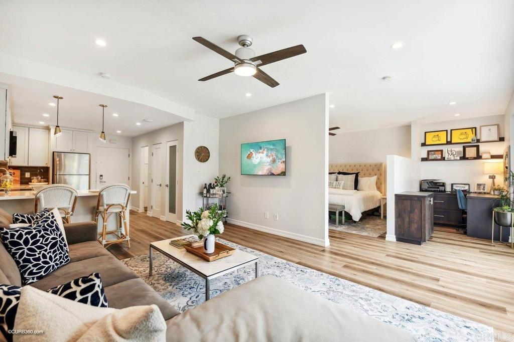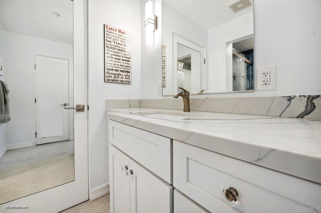 Resort-style living adjacent to the La Costa Omni Resort. Amazing opportunity to use as a full-time residence, second home, or as a very lucrative investment, as this is one of only a few buildings where short term rentals are allowed by the City of Carlsbad.This stunning 1 bedroom + office area, 1.5 bath unit was recently totally renovated down to the studs, and features the highest of upgrades including pecan luxury vinyl plank flooring, smooth finish walls, recessed LED lighting throughout, custom built-ins, high-end window coverings, white vinyl dual pane sliding glass doors, and so much more...the complete list of upgrades is in the attachments. Upon entering this bright and open unit, you'll be impressed with the kitchen, featuring Yorketown Magnolia white Shaker cabinetry with quartz countertops, stainless steel appliances, Blanco undermount sink, pendant lighting above the bar height peninsula, and a custom designed pantry. The primary suite has a spa-like bathroom with custom quartz walk-in shower, an owner's closet, as well as a wardrobe closet and even a stackable washer/dryer. The office area has a custom alder wood office desk with file drawers, photo display rails and storage cabinet....who doesn't love a home office? The location on the "quiet" side of the building (away from the pickle ball courts) offers peaceful views of the resort and nice beachy breezes. The Balboa building has it's own private fenced pool, BBQ area, lawns, and secure underground parking, as well as combo secured entrance to the building as well as CCTV throughout. The Omni Resort features two 18 hole golf courses and tennis courts...available for those choose to buy a membership. Golf, sport and social memberships are available. The restaurants, spa, and shopping at the resort are open to the public. And it's just a short drive to fabulous Carlsbad and Encinitas beaches, tons of shopping and great restaurants. Don't miss the opportunity to see this unique property!!