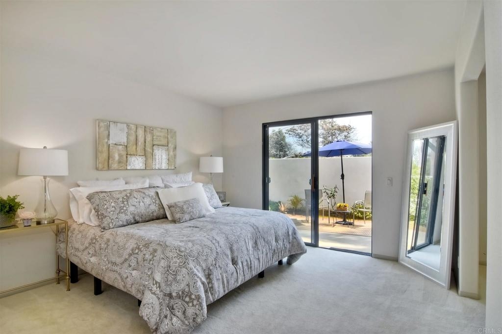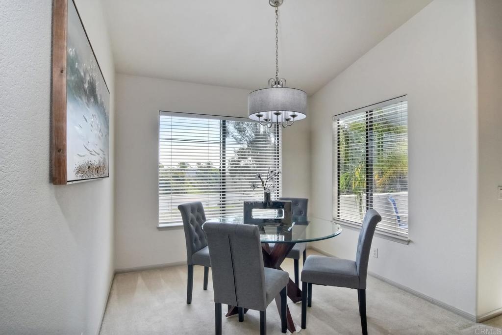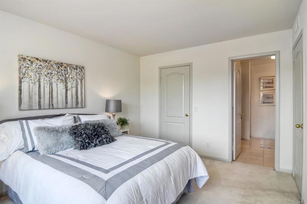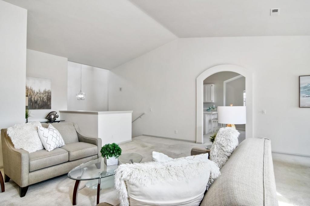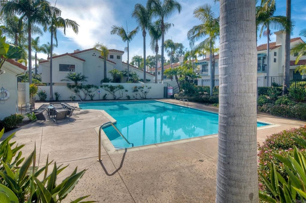 Beautiful 2+1 Bedrooms, 2-1/2 Baths, 1,867 Sq. Ft., in the community of Bel Azure’s an enclave of 30 homes located in NW Carlsbad. This home features a Master Suite with en-suite Bath, walk-in closet and an additional Optional Room (Sitting, Office or possible 3rd small bedroom). Second Bedroom is a Jr. Suite with attached bathroom and step in closet. All bedrooms open to back garden patio w/storage closet. This freshly painted home has been recently updated with A/C unit, heat, water heater, toilets also home has soft water service. The home feels like a detached home with its open airy floor plan, vaulted ceilings and a large fireplace. The light & bright large kitchen with vaulted ceilings offers ample countertops and cabinets. Separate Laundry room includes newer Washer and Dryer. Enjoy views of hills and mountains in the distance, from the common living area and balcony. An attached oversized 2 car garage features a large loft storage overhead as well as built in storage area. The HOA covers building exterior, roof, termite work, front and community landscaping, roads, and the community pool.