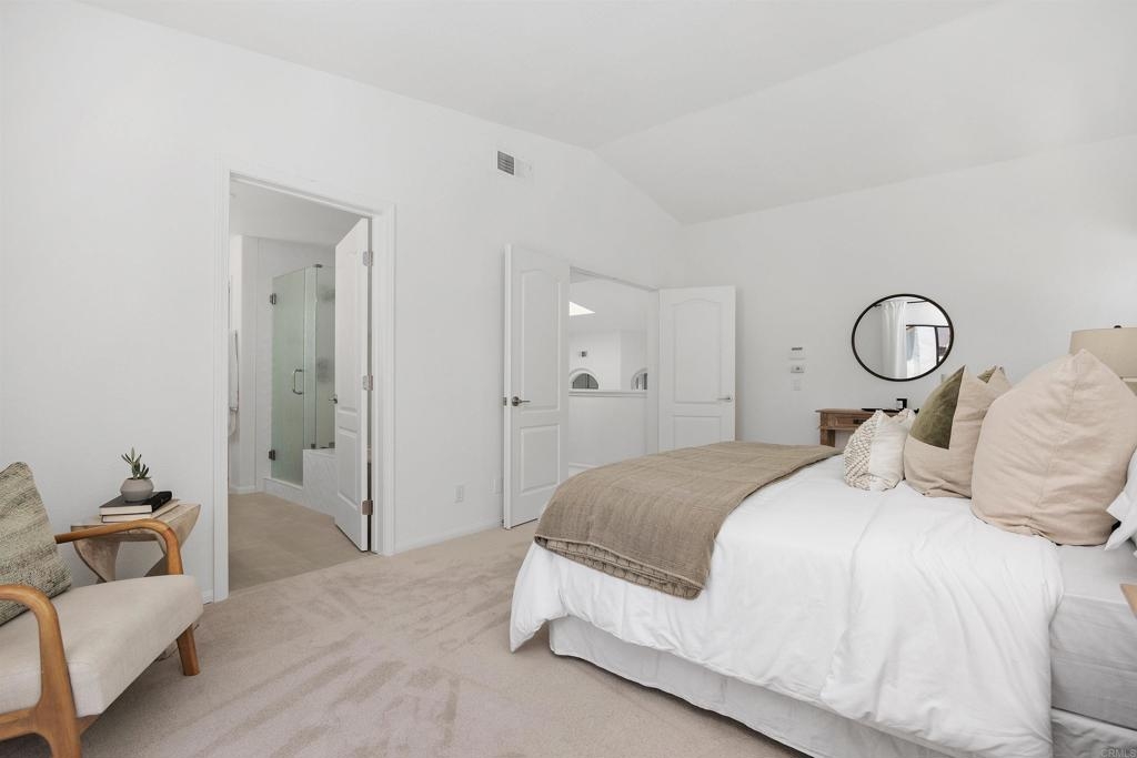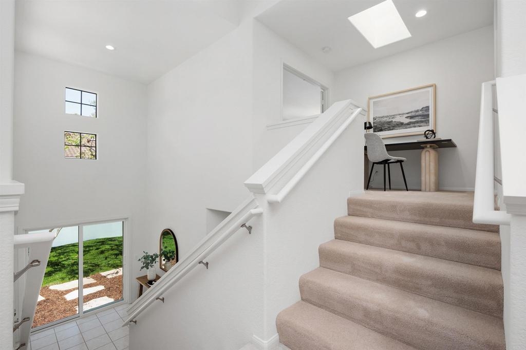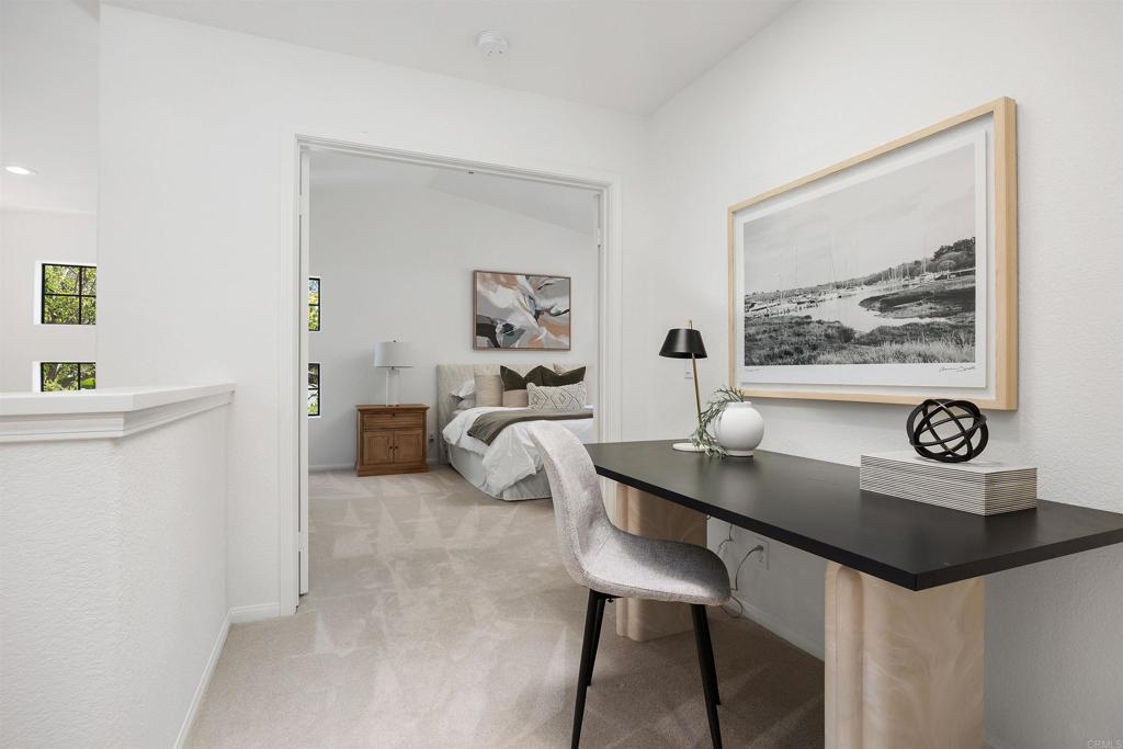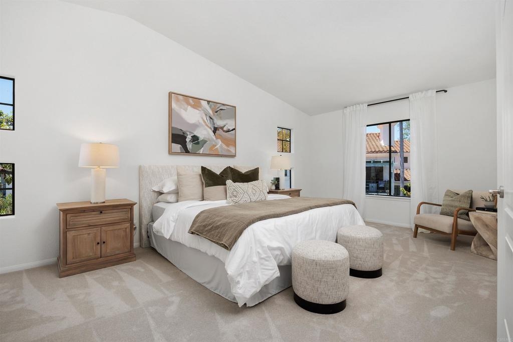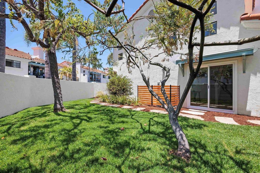 One of a Kind! This home is situated in a Peaceful and Coastal close location in a small community and is in immaculate condition. Enjoy an amazing private wrap around Grassy Yard, plus Patio, perfect for relaxing or playing, this corner spot lives like a single family home. High ceilings with lots of windows and natural light! Two bedrooms on entry level. Great Carlsbad location. Easy guest parking with a Community Pool and a spacious attached 2 car garage. Private laundry room. Very close to schools. Quality updates to Kitchen, Bathrooms and outdoor space. Office "Nook". Feel the coastal breezes, West of El Camino Real in this wonderful enclave! You won't find another one like this!