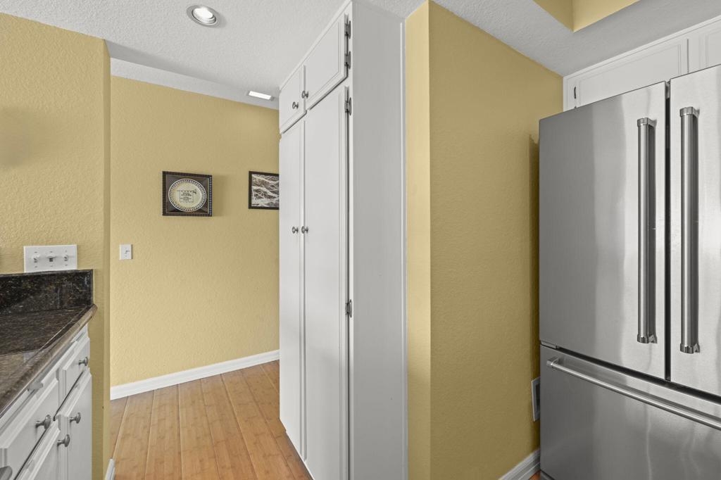 Less than a mile to Carlsbad State Beach. Make this your full time or 2nd home. Wonderful upstairs corner unit condo in coveted Carlsbad Crest, filled with upgrades and natural light, with a large patio to enjoy ocean breezes. Enjoy thick plank bamboo flooring, custom paint, wood blinds, granite kitchen tile counters, beautiful ceramic tile shower and remodeled bathrooms, including aa added shower in what was originally a 1/2 bath, upgraded fixtures, spacious patio and more. The exterior is freshly painted. Move-in ready and less than a mile to beach, shopping, dining, parks! Located in the lovely beach-close community of Carlsbad Crest you will enjoy the outdoor relaxation and ocean breezes from a spacious patio. A beautiful tree-lined complex that features 2 community pools/spas, and is just a short distance to shopping, dining and the beach. This home includes a covered carport space and large storage closet that also has an EV Charger. One of the very few homes in this community with that convenience. Come live the Carlsbad lifestyle today.