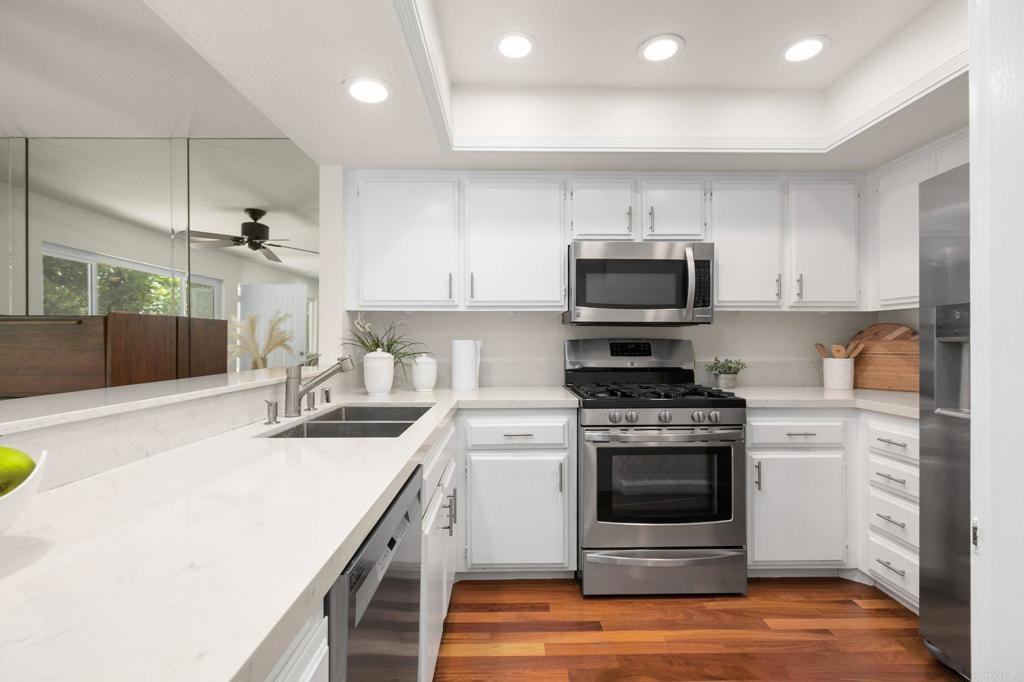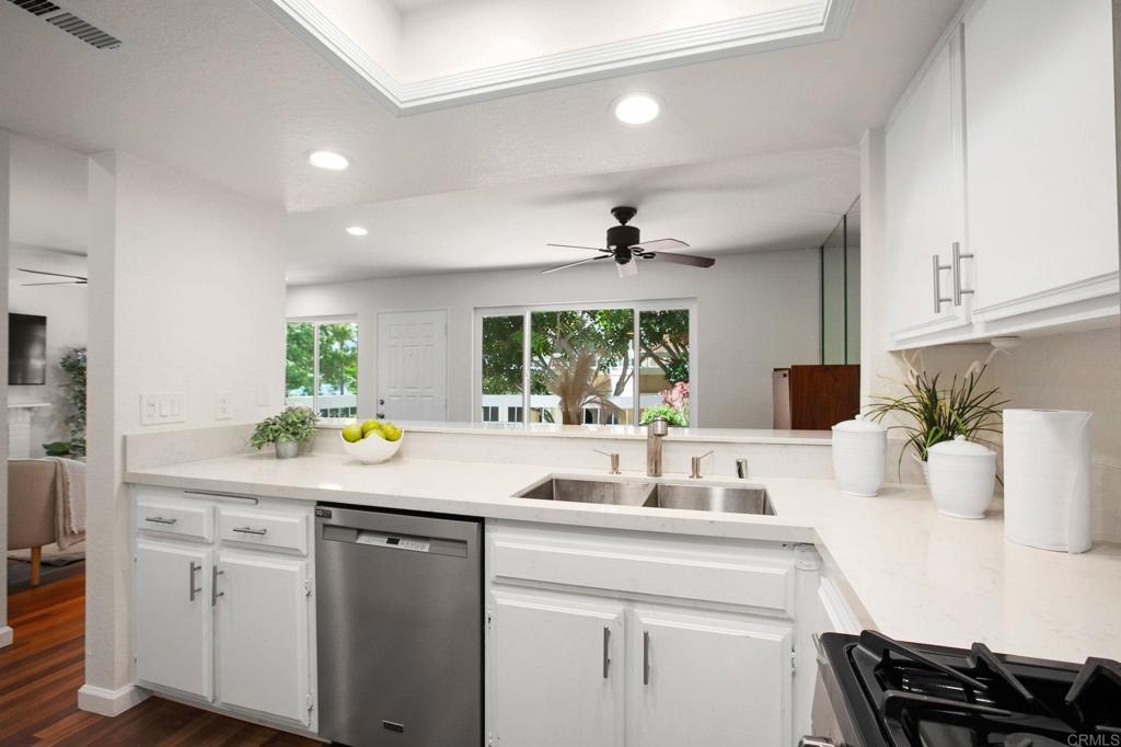Soak up the sun and enjoy the ocean breeze in coastal Carlsbad, where most only dream of vacationing. Light, bright and charming 2 bedroom, 1.5 bath upper end unit. Upgrades include fresh paint throughout, new carpet in the bedrooms and brand new dishwasher and fridge. Modern countertops, flooring and details throughout makes this condo turn-key! The Carlsbad Crest complex offers two community pools with spas and plenty of greenbelt lush landscaping perfect for a picnic under a shady tree, throwing the ball around and taking the dog for a walk. One reserved covered parking space with additional parking nearby. Storage closet for all of your bikes and beach gear. Ideally located just minutes to the best beaches and surf SoCal has to offer, lagoon and hiking trails, convenient shopping centers, top schools, restaurants, cafes and easy access to I-5 or the El Camino corridor. Live the ultimate lifestyle at 888 Buttercup Rd!
