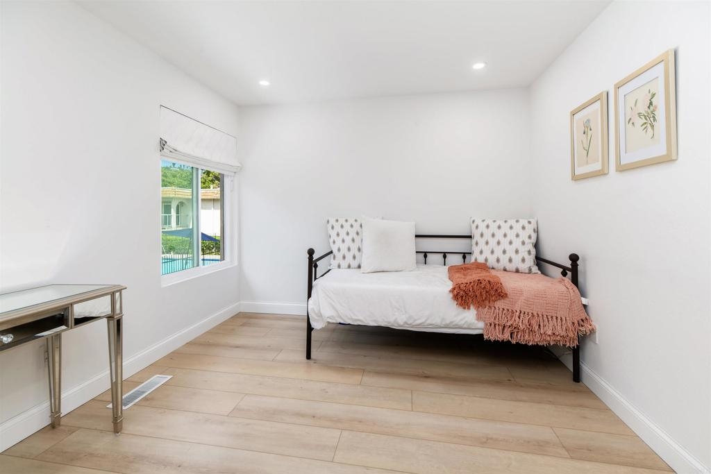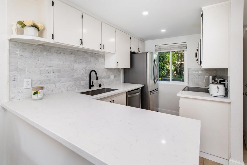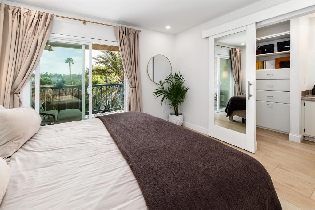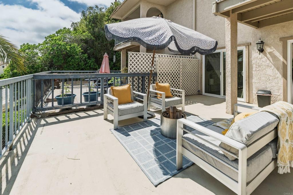 Stylishly remodeled La Costa townhome in the vibrant community of Casa Grande! Set just behind the Omni La Costa Resort and Golf Course, this beautifully redesigned townhome blends privacy, indoor-outdoor living, and elevated design in one of North County’s most sought-after communities. More than 800 square feet of exclusive outdoor space—including a sun-drenched main-level deck and a wide upper balcony with peek golf-course views—make the home feel like a private retreat rather than a typical condo. Inside, a bright open-concept layout unfolds in clean, coastal style. The reimagined kitchen showcases quartzite countertops, stainless-steel appliances, new hardware, a glass-tile backsplash, and an undermount microwave. A wraparound peninsula flows smoothly into the dining and living areas, while dual sliding doors invite you out to the patio for effortless al-fresco dining or quiet evenings in the coastal breeze. Upstairs, both bedrooms serve as private suites with full baths and ample closets. The primary suite enjoys a balcony overlooking La Costa’s fairways and a smartly redesigned bath featuring a glass-enclosed shower and updated lighting. A thoughtful rework of the floor plan created a spacious walk-in closet with custom built-ins, adding seamless storage and everyday ease. Throughout the home, every finish speaks to comfort and modern design. Wide-plank CALI Bamboo flooring grounds both levels, complemented by recessed LED lighting, designer pendants, and hardwired vanity lights. Downstairs, walls were removed to open the main living area, and a custom under-stairs storage nook maximizes function. Fresh paint, updated doors, drywall, trim, and baseboards complete the turn-key feel. Just minutes from Carlsbad’s beaches, parks, and top-rated schools—and less than a five-mile drive to resort destinations such as The Omni, The Beacon, and La Costa Town Square—this townhome delivers everyday convenience in a setting that feels like a getaway. With access to a community pool and spa, mature landscaping, abundant guest parking, and a dedicated garage space with added storage, this is the kind of coastal living that checks every box: modern, spacious, and effortlessly connected.