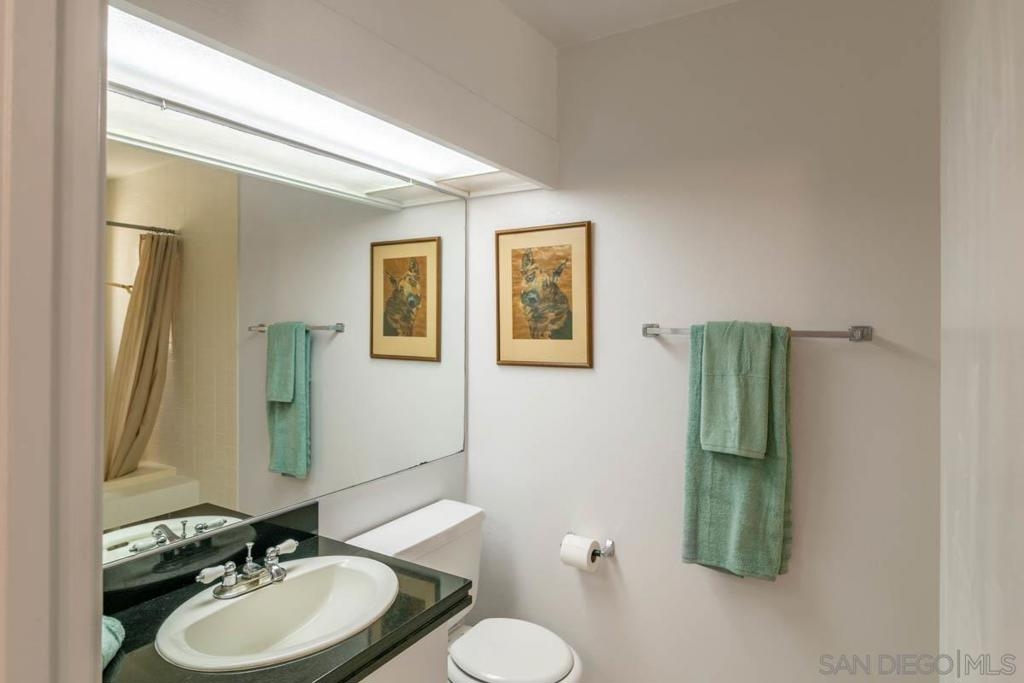 Great corner 2 bedroom, 2.5 bathroom unit, only one shared wall located in sought after La Costa. Granite countertops in the kitchen. Laminate flooring downstairs. Full size washer and dryer in closet. Large slab patio downstairs and deck off pf primary bedroom upstairs. Large walk in closet in primary bedroom. Each bedroom has ensuite bathroom. Close to freeways and shops. Equipment: Dryer, Washer Sewer: Sewer Connected Topography: LL