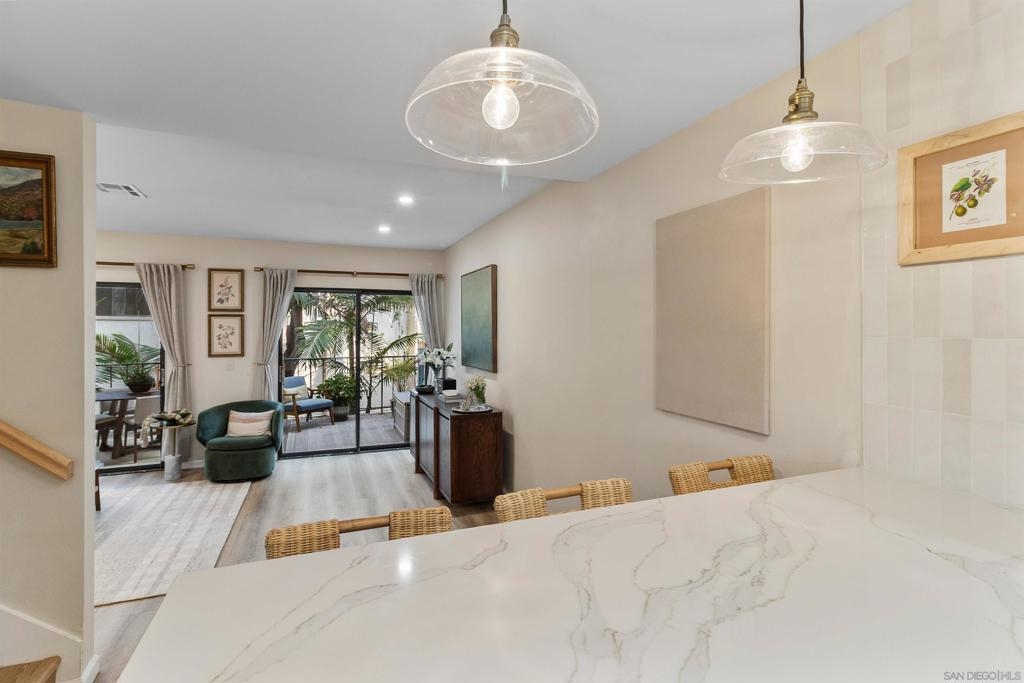 Discover your dream La Costa townhouse! This beautifully remodeled 1,080 sq ft home features 2 bedrooms, 2.5 baths, and a brand-new modern kitchen with quartz countertops, new stainless steel appliances, and a gas stove. The open floor plan, enhanced by recessed lighting, is perfect for entertaining. Enjoy brand new Luxury Vinyl Plank flooring throughout and a chic, remodeled main level bathroom. Step outside to two private balconies and take advantage of the community's newly reconstructed pool and hot tub. With two covered parking spaces, this home is an ideal oasis in a vibrant community. This home also features AC and a new water heater.