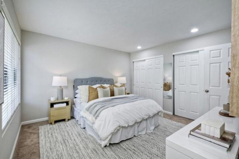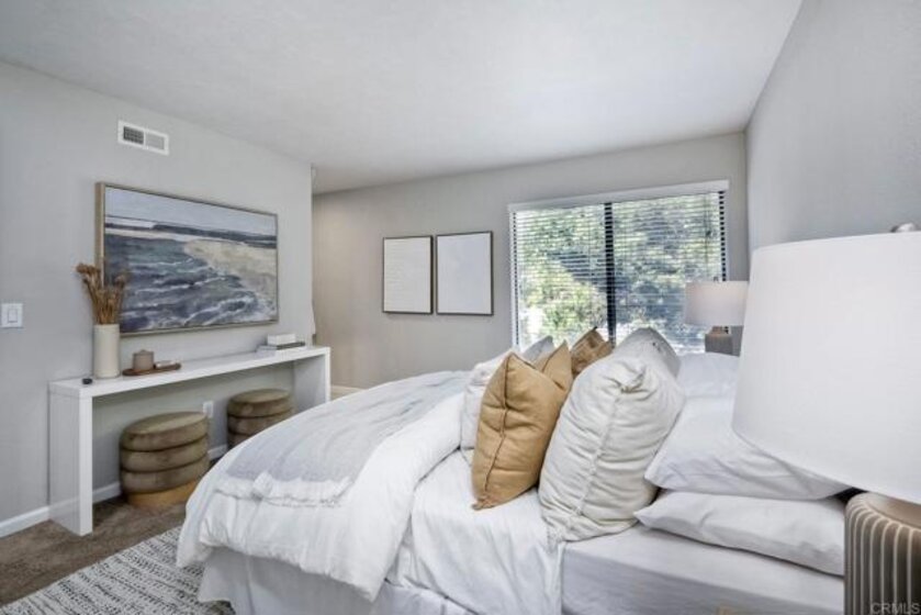 With no one above and no one below, excellent indoor-outdoor flow to two oversized balconies, this special property truly lives like a dream town home! Introducing an extraordinary opportunity nestled in the vibrant heart of Carlsbad, California. The home features two master suites, each equipped with its own bathroom, ensuring privacy and convenience for residents and guests alike. Three well-appointed bathrooms, dedicated parking, and access to communal amenities such as a pool and spa. Its prime location offers convenient access to the best of Carlsbad - from upscale shopping and exemplary schools to scenic golf courses and meandering walking trails, ensuring a lifestyle of ease and excitement. The strategic end-unit positioning, coupled with its distinguished features and smart design, enhances the living experience, making this condo the crown jewel of the community. This condo is a remarkable find, offering a unique blend of spaciousness, brightness, privacy and indoor-outdoor flow. Excellent starter home with great upside.