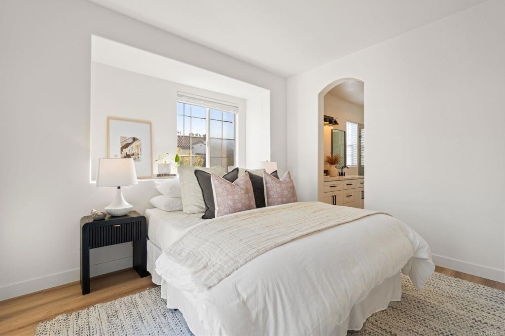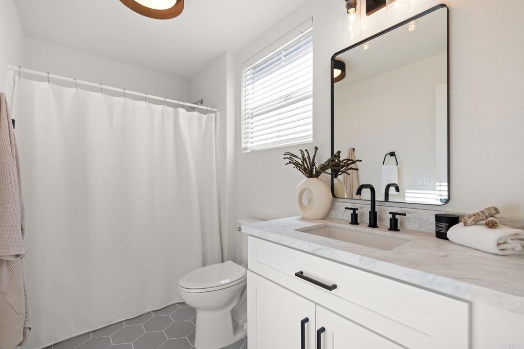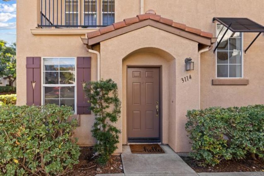 Welcome to 3114 Via Puerta in the Cascada community of Rancho Carrillo, Carlsbad — a fully renovated 3-bedroom, 3-bath corner-unit townhome offering modern design, turn-key convenience, and the best of North County coastal living. This beautifully updated home features light oak luxury vinyl plank flooring throughout, an attached 2-car garage, and a private entry-level office/bonus room alongside a laundry area with a newer washer and dryer. On the upper main living level, abundant windows fill the space with natural light. Enjoy a spacious balcony, cozy fireplace, and open dining area that flows into the brand-new kitchen, fully reimagined with white shaker cabinetry, quartz countertops, a subway tile backsplash, and modern black-and-brass appliances. This level also includes a renovated bedroom with an en-suite bath. Upstairs, the primary suite offers its own private balcony, a walk-in closet, and a designer-upgraded bathroom featuring deco-style tile flooring, modern fixtures, white shaker cabinetry, and a custom glass shower. A secondary bedroom with its own updated en-suite bath provides additional comfort and privacy. Additional improvements include a new AC unit (July 2025), new toilets, updated window blinds, and many thoughtful upgrades throughout. The Cascada community features its own pool and spa, with added access to the Rancho Carrillo Swim Center, offering a larger pool/spa, grassy areas, and year-round community activities. Living in Carlsbad means embracing the very best of North County coastal San Diego—a lifestyle defined by sunshine, ocean breezes, and the perfect blend of relaxation and convenience. From 3114 Via Puerta, you’re minutes from world-class beaches, scenic walking and hiking trails, and vibrant shopping and dining in Bressi Ranch, La Costa, and Lake San Marcos. This home is the perfect blend of modern upgrades, comfort, community amenities, and the quintessential Carlsbad coastal lifestyle—completely turn-key and ready to move right in.