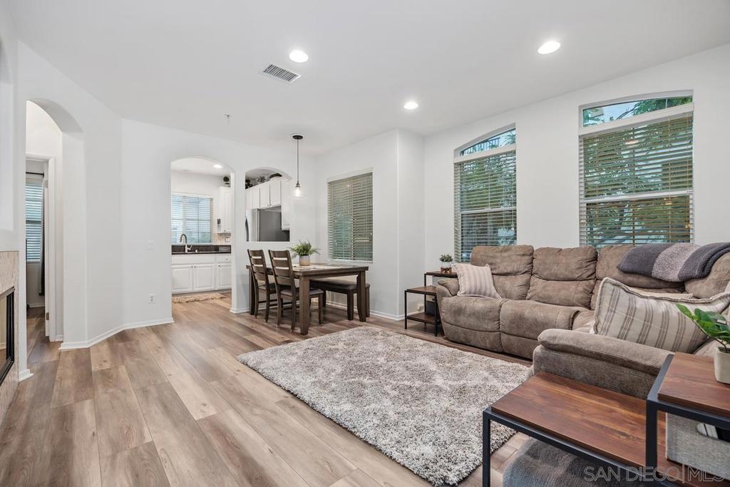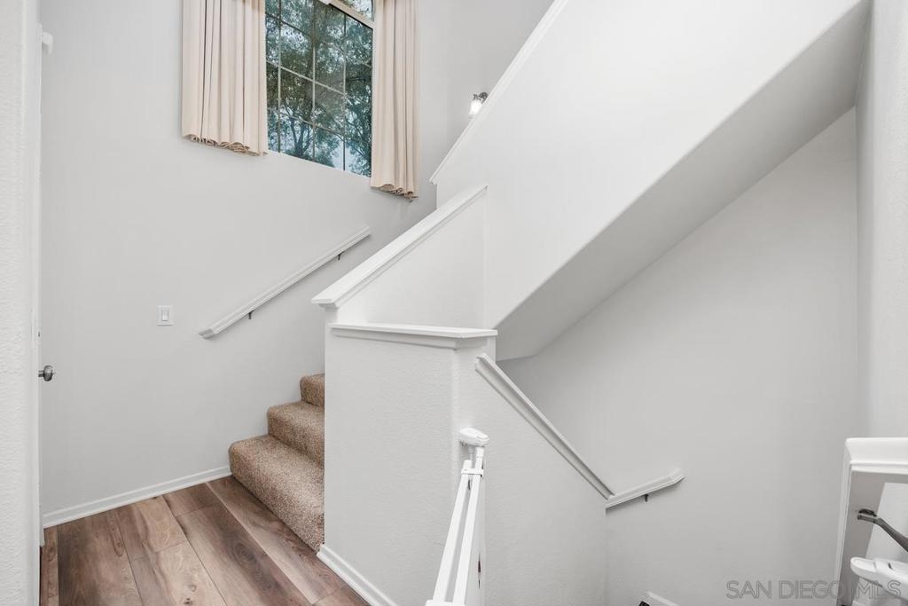 Beautiful light and bright corner unit in the Cascada complex of Rancho Carrillo! This tri-level home features 3 bedrooms + an opt office or guest suite. The first floor offers a versatile entry-level office or optional bedroom with a barn door closure, a laundry closet, and an attached two-car garage with epoxy flooring and ceiling storage racks. On the second floor, you will find an open-concept layout with LVP flooring, a spacious family room with a built-in entertainment center, a cozy fireplace, and a dining area. The updated kitchen showcases granite countertops, white cabinetry, and stainless steel appliances, leading out to a balcony with westerly sunset views. This level also includes one bedroom and a full guest bathroom. The top floor provides maximum privacy with a primary suite featuring a spa-inspired bathroom, built-in closet organization, and it's own balcony. The third bedroom also includes an ensuite bathroom. Additional highlights include fresh interior paint, a newer A/C unit (2024), security system, Ring doorbell, granite countertops in the bathrooms, and carpet overlaying the 2nd staircase. Residents of the Cascada community enjoy a private pool and spa, plus access to the Rancho Carrillo Swim Center’s year-round heated pool, clubhouse, and BBQ areas. The home is ideally located near Leo Carrillo Ranch, Legoland, Carlsbad beaches, and award winning SMUSD!