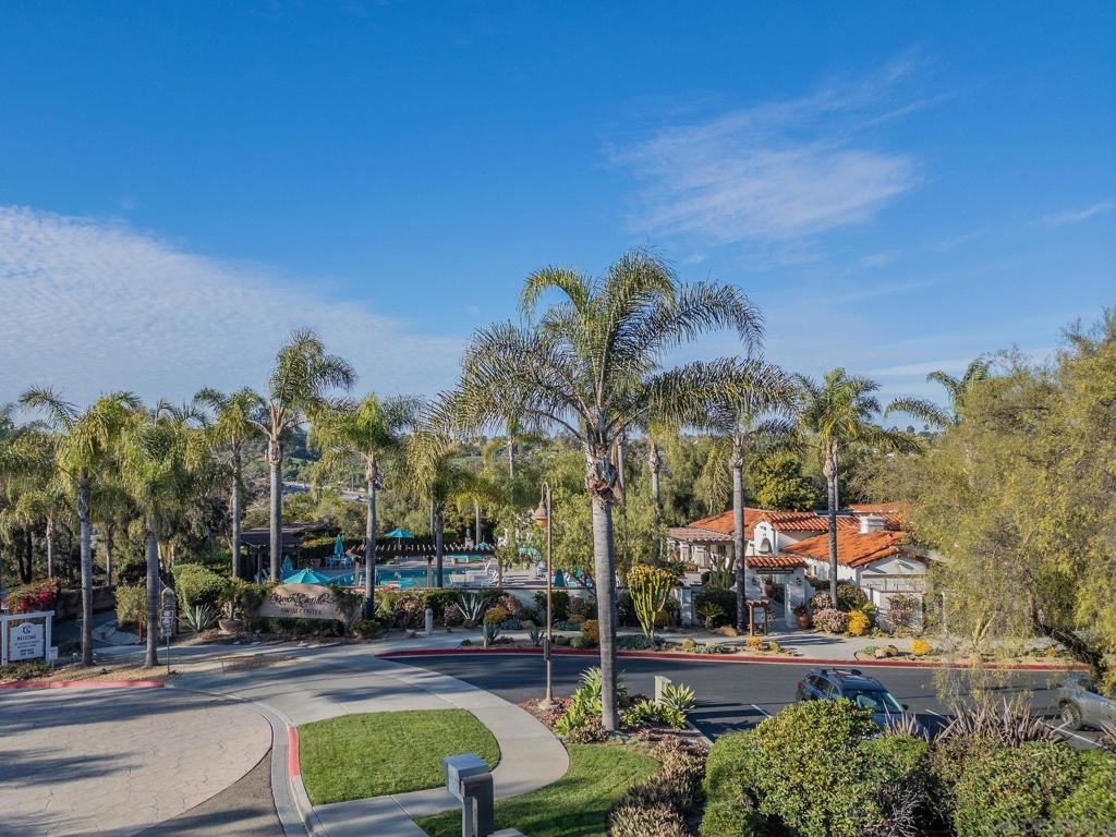 Incredible opportunity to own in one of the best communities in Carlsbad - Welcome Home to Cascada in Rancho Carrillo. Prime corner location in the neighborhood, with no direct neighbors in front and to one side, offering wrap-around windows filling the home with natural light. Upon entry on the ground floor you will find the bonus room, perfect for an office, gym or can easily be closed off into a third bedroom. Main level features a living room with a cozy fireplace, formal dining room with an outdoor patio that enjoys expansive views of the community and pool, and a nicely appointed kitchen with quartz counter tops, breakfast bar and stainless steel appliances. Two generously-sized bedrooms with shutters. Primary bedroom is tucked away on the other side of the home for privacy and is completed by an ensuite bath and walk-in closet. Secondary bedroom has a walk-in closet and is conveniently across from the hall bath. You won't lack for storage with this two car garage lined with built-in Custom California Closet cabinets on both sides and also includes a desk, file cabinets and upper shelves. Other features you don't want to miss real hardwood floors, new carpet in bedroom, custom wood trim in living room and dining room, custom open stairway with spindles and banisters, full house Rain soft water filtration system, new lighting fixtures throughout, bathroom and kitchen fixtures, hardware for all doors, switch plates and outlet covers, new toilets and shut off valves. Hurry this one won't last!