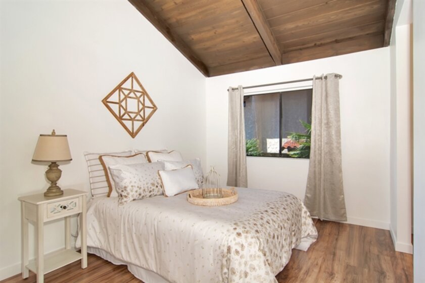 Spacious newly updated and charming! This light and bright mid century condo with two fireplaces offers new flooring and paint throughout as well as new kitchen cabinets, appliances, granite as well as cabinets and granite in all bathrooms . Enjoy serene views from most rooms and the decks off both living room and master bedroom. Community offers two pools, tennis and meandering streams and waterfalls. Located near Omni La Costa Resort, shopping, dining and theaters. Ideal home or vacation home! This charming condo was just remodeled with lament wood flooring, new kitchen cabinets, appliances and granite counter tops in the kitchen and the bathrooms and new paint. There are two fireplaces, one in the living room and one in the master bedroom. Both living room and the master bedroom offer sliding doors to view decks. The master bedroom and second bedroom with its own bathroom have high vaulted wood ceilings. The community offers two solar common area pools, three saunas, two tennis courts, BBQ, community laundry room, upper and lower parking garages, a north side carport and ample visitor parking. Enjoy the 10 meandering streams on the property.. Neighborhoods: La Costa Complex Features: ,,,,,, Equipment: Dryer, Range/Oven, Washer Other Fees: 0 Sewer: Sewer Connected Topography: LL