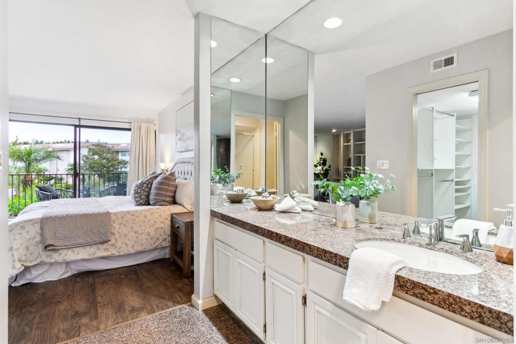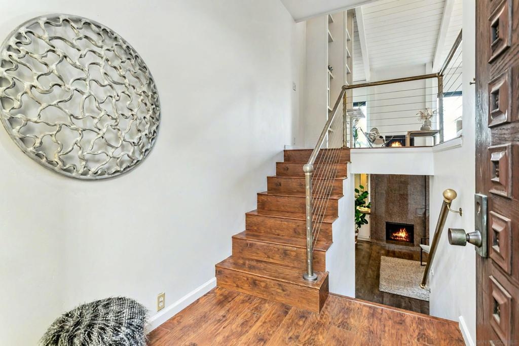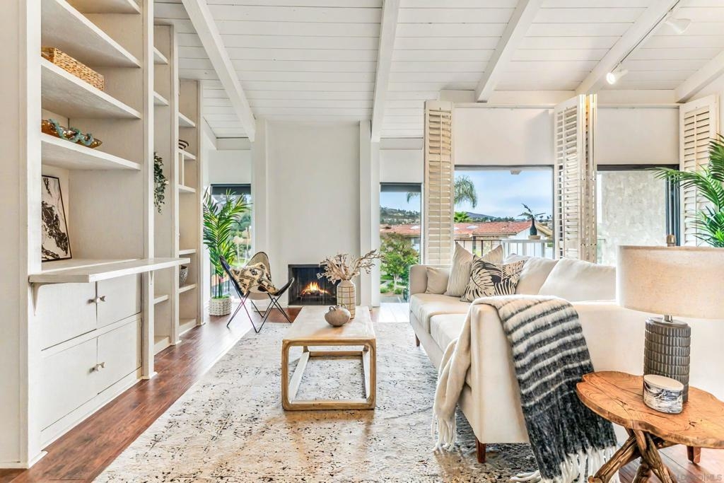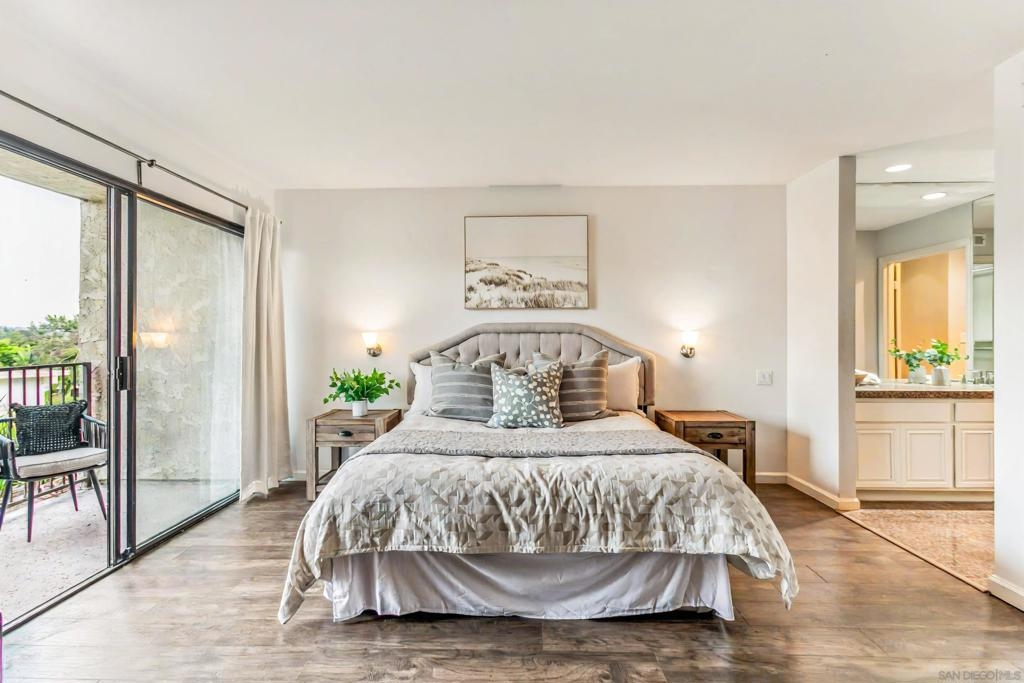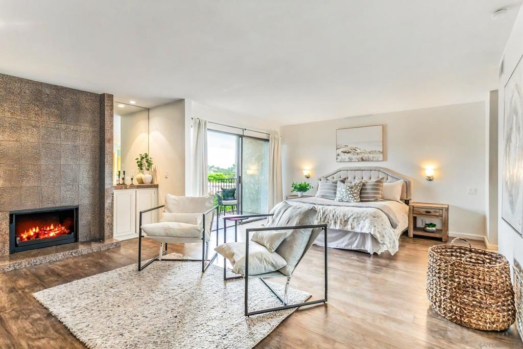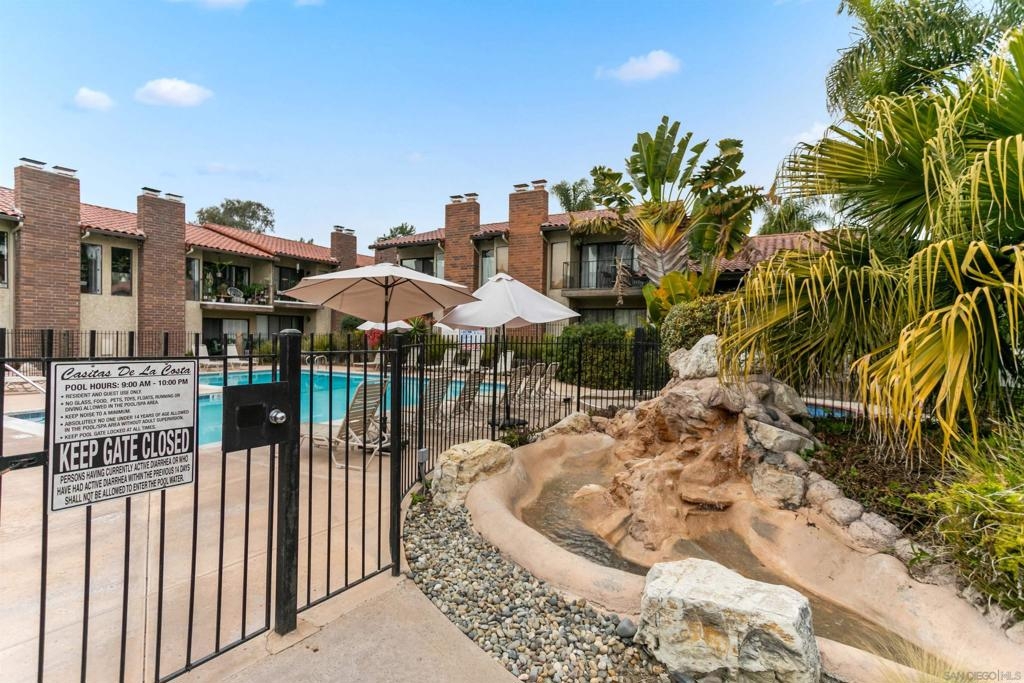 Welcome home to Casitas De La Costa, a resort-style community located in the heart of La Costa, featuring lush tropical landscaping with rushing water features throughout, two swimming pools and Jacuzzis, community saunas, and tennis courts. This property is in the ideal location to enjoy the Southern California lifestyle, close to sandy beaches, gourmet dining, shopping, and award-winning schools. This spacious split-level townhome-style condo is truly one of a kind. As you enter the property, you are welcomed by soaring vaulted ceilings and breathtaking mountain views to the East. The great room offers ample room for living and dining, with a built-in wet bar, built-in entertainment center, wood shutters, and a pass-through countertop to the kitchen. This property features two fireplaces and two private balconies, one conveniently located on each floor of the home. The oversized primary suite offers extra room for a seating area next to the cozy fireplace, a private patio area to take in the San Diego sun, a lavish bathroom with sunken soaking tub and shower, a massive walk-in closet, a white wood vanity with granite countertop and private in-unit laundry. This property is within close proximity to the best Carlsbad has to offer, including South Ponto Beach, South Carlsbad State Beach, Omni La Costa Resort and Spa, The Forum Shops, The Beacon La Costa Shopping Complex, Equinox Gym, Cinepolis Luxury Cinema, Vons Supermarket, Carlsbad City Library, and so much more. All this, and low monthly HOA dues too! This property truly has it all. This property comes with an assigned dedicated parking space located in the community’s secure parking garage, which offers extra room for storage and guest parking. The kitchen is fully equipped with sleek black appliances including an oven, stove, trash compactor, built-in microwave, dishwasher and refrigerator, with white wood cabinetry, a white porcelain sink, and white tile countertops. Perfect for primary residence, or a savvy investor. Don’t miss out on this rare opportunity.