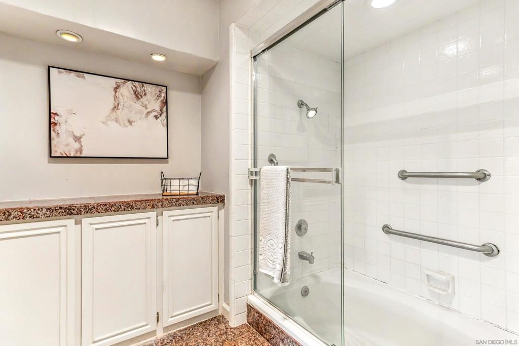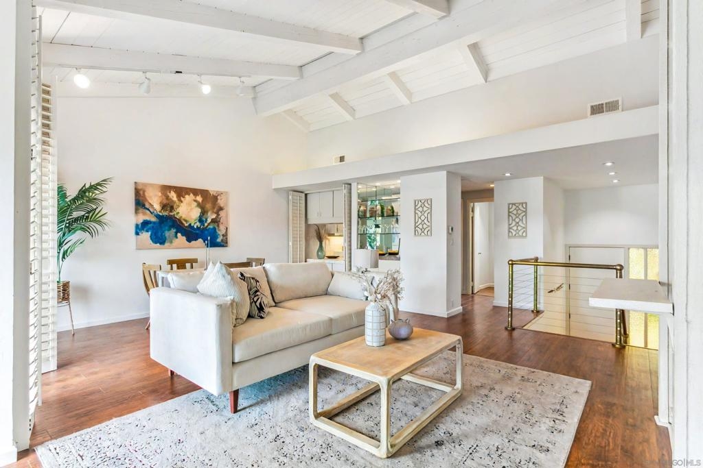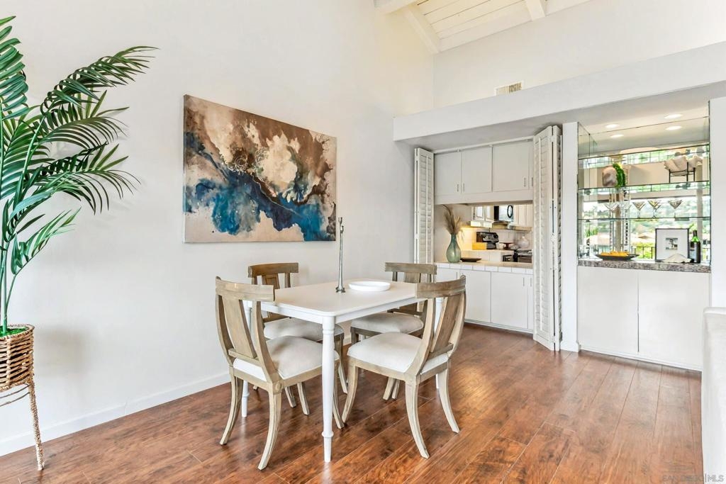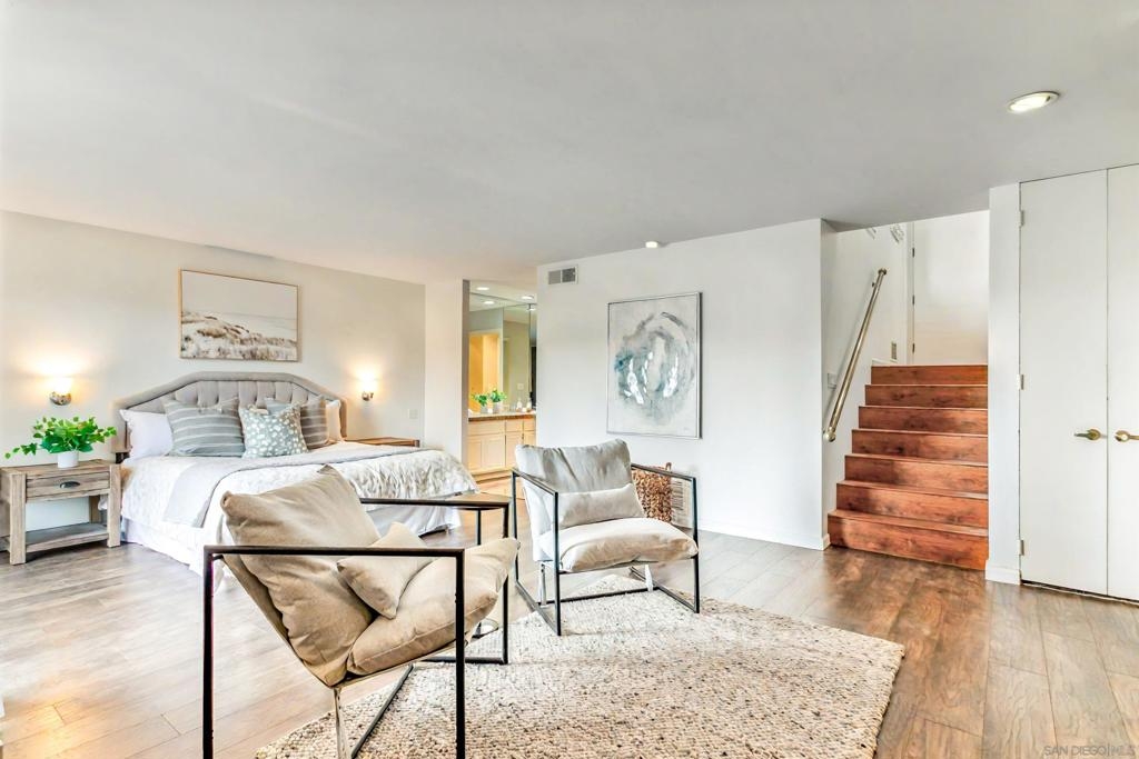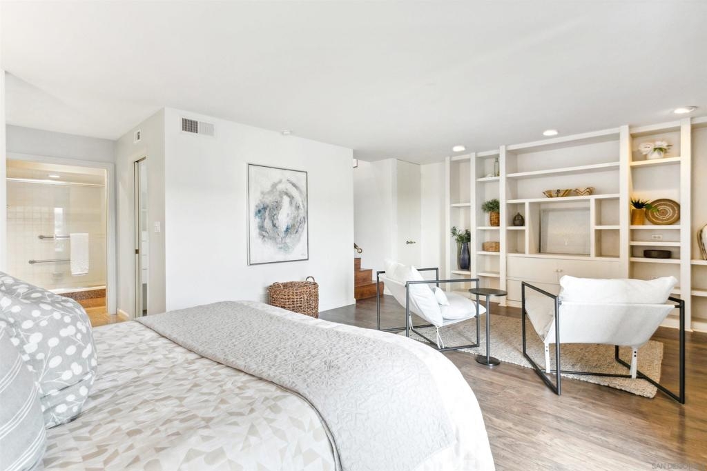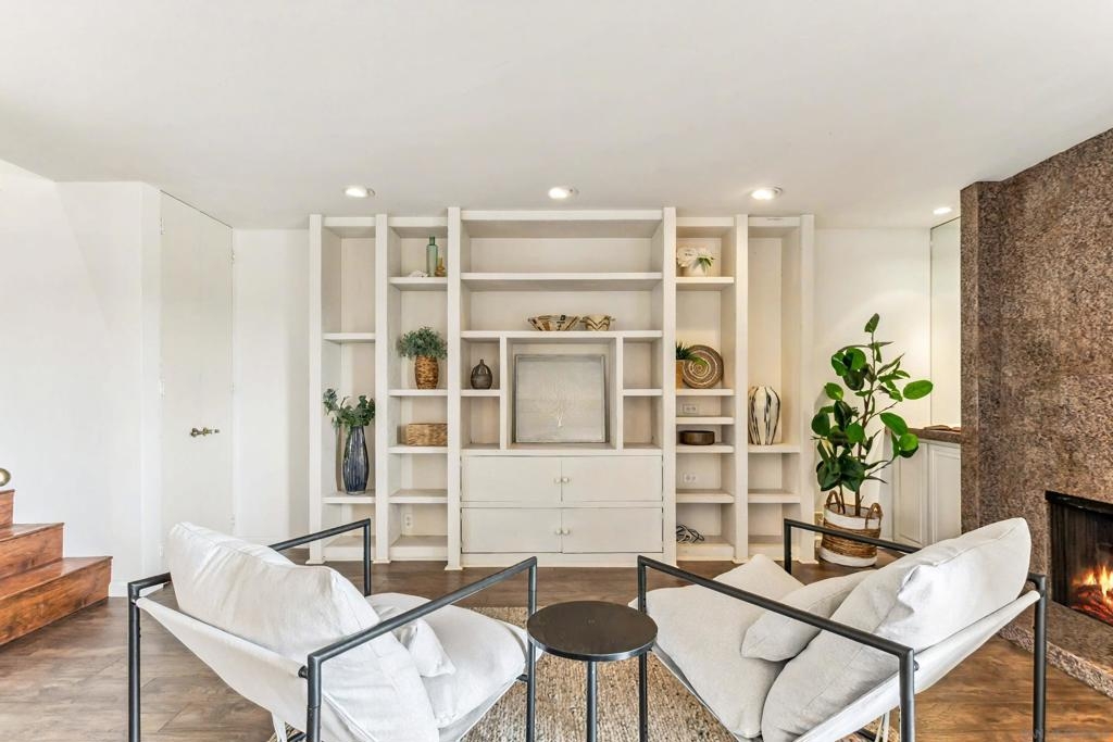 Welcome home to Casitas De La Costa, a resort-style community located in the heart of La Costa, featuring lush tropical landscaping with rushing water features throughout, two swimming pools and Jacuzzis, community saunas, and tennis courts. This property is in the ideal location to enjoy the Southern California lifestyle, close to sandy beaches, gourmet dining, shopping, and award-winning schools. This spacious split-level townhome-style condo is truly one of a kind. As you enter the property, you are welcomed by soaring vaulted ceilings and breathtaking mountain views to the East. The great room offers ample room for living and dining, with a built-in wet bar, built-in entertainment center, wood shutters, and a pass-through countertop to the kitchen. This property features two fireplaces and two private balconies, one conveniently located on each floor of the home. The oversized primary suite offers extra room for a seating area next to the cozy fireplace, a private patio area to take in the San Diego sun, a lavish bathroom with sunken soaking tub and shower, a massive walk-in closet, a white wood vanity with granite countertop and private in-unit laundry. This property is within close proximity to the best Carlsbad has to offer, including South Ponto Beach, South Carlsbad State Beach, Omni La Costa Resort and Spa, The Forum Shops, The Beacon La Costa Shopping Complex, Equinox Gym, Cinepolis Luxury Cinema, Vons Supermarket, Carlsbad City Library, and so much more. All this, and low monthly HOA dues too! This property truly has it all. This property comes with an assigned dedicated parking space located in the community’s secure parking garage, which offers extra room for storage and guest parking. The kitchen is fully equipped with sleek black appliances including an oven, stove, trash compactor, built-in microwave, dishwasher and refrigerator, with white wood cabinetry, a white porcelain sink, and white tile countertops. Perfect for primary residence, or a savvy investor. Don’t miss out on this rare opportunity.