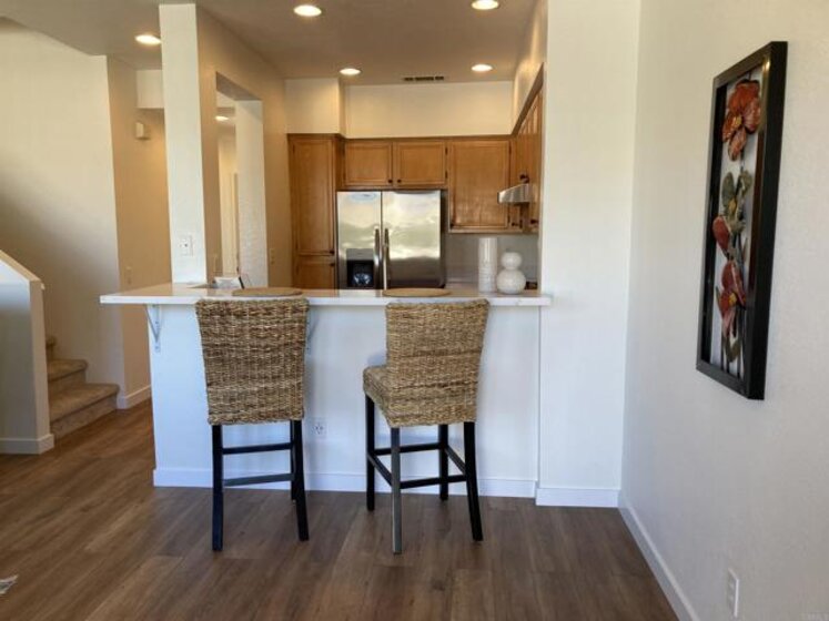 Come live close to the beach!! Just completed major renovations on this 3 bedroom, 2 1/2 bath townhome! Very private and natural light makes this home very special. New flooring throughout, Quartz counter tops, sink, faucets, stainless steel appliances, painted the entire house, and much more... There is a large, fenced patio in front and an attached 2 car garage. Great location close to the beach and shopping and a beautiful view of the mountains from the master bedroom. There is a community pool and jacuzzi plus an area to relax. There is a green belt right outside for kids and pets to play on. The school district is excellent.