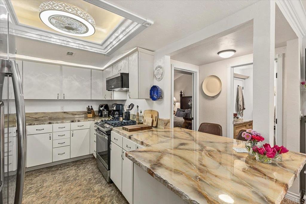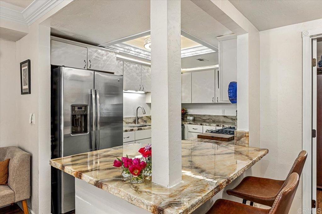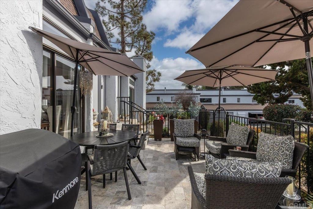 Welcome in to your happy place! UPDATED, OPEN AND AIRY, TRANQUIL WITH LUSH LANDSCAPE VIEWS, ATTACHED OVERSIZED TWO-CAR GARAGE AND STORAGE like you've never seen before in a condominium! Enter across a travertine-tiled courtyard, past the serene water feature, and into this character-rich, incredibly well-cared-for home with NO ONE ABOVE OR BELOW YOU. Tucked behind the La Costa Golf Course & Luxury Resort in Carlsbad and away from all the noise, come soak in the cool architecture of this move-in ready, dual-master floorplan with vaulted ceilings and tons of natural light through floor-to-ceiling windows. Snuggle in to one of many cozy sitting areas by the fireplace or dining area or chat with the cook at the eat-in bar. The open kitchen overlooks the dining room and living room for easy socializing during gatherings (yay!) and boasts newer, faux-marble, custom-engineered countertops, stainless steel GE appliances (including a new microwave), white cabinets with slow-close drawers, and bar seating. Both master suites feature updated ensuite bathrooms and custom closets, including one walk-in closet. Other bonuses are an oversized two-car garage with shelving and laundry hook-ups, a bonus storage area off the garage that provides a HUGE amount of space for organizing your toys and treasures, brand new water heater, crown moulding, wood-look flooring, gas fireplace, custom fireplace mantel, and Nest thermostat! LOTS of value here. The condo community provides a pool, spa, tennis courts, and walking trails with views of the golf course. Come see for yourself the retreat-like living here at Colina de la Costa!