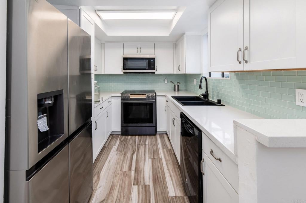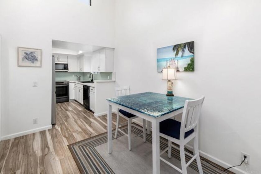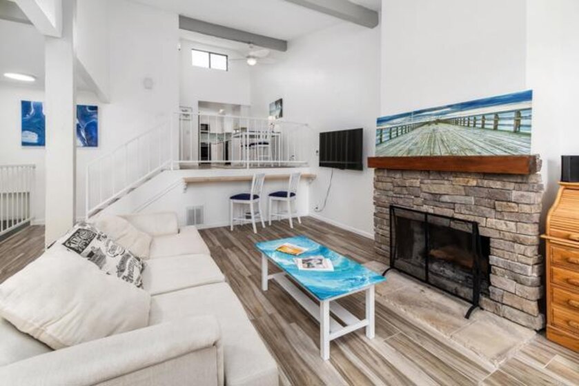 Light, bright, and ready for its next owner! This 1 bed, 1.5 bath La Costa townhouse checks all the boxes: wood-look porcelain floors, updated kitchen + baths, a cozy stone fireplace, and vaulted ceilings. Kick back on your patio with greenbelt and golf course views, perfect for sunsets and breezes. With a 2-car garage, end-unit privacy, and fresh modern upgrades, this home is stylish, comfortable, and priced to move!