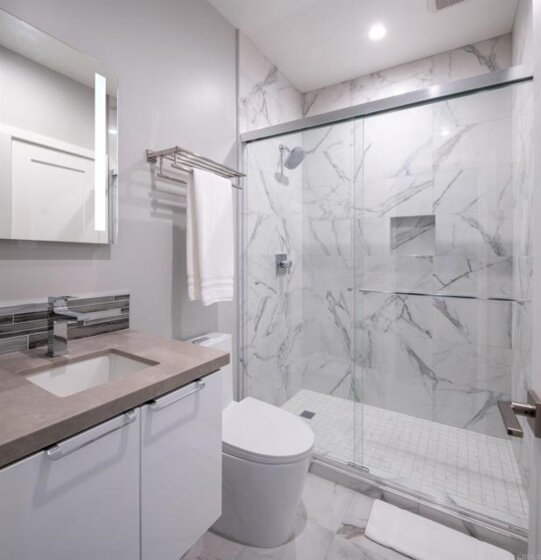 PRICE IMPROVEMENT! Fully upgraded 1-bedroom / 2-full bath condo located on the grounds of the beautiful Omni La Costa Resort. The kitchen boasts new quartz waterfall counters, GE Cafe Modern Induction Range and Modern Microwave, Liebherr refrigerator/freezer, Fisher Paykel drawer dishwasher, Schuler custom wood cabinets, Summit wine fridge and a Franke sink faucet. The Master bathroom is a work of art with marble-look porcelain tiles lining the floors and walls as well as dual shower heads in the thermostatic shower system. The dual vanity has a Schuler floating wood cupboard, Hansgrohe fixtures and lighted mirrors. These upgraded fixtures are also utilized throughout the second full bath. The spacious bedroom looks out on lush, green landscaping and bright, colorful birds of paradise and fits a king-size bed. The wall and doors dividing the bedroom from the living/dining room space have been sound-proofed to allow for privacy when hosting guests. Two oversized sliders create a wall of windows that allow lots of light, sunshine and light breezes into the space. The condo comes equipped with LG Washer and Heat Pump Dryer as well as high-efficiency split HVAC system with individual thermostats for living and bedroom areas. All furnishings included! There is a pool & jacuzzi associated with the building. Live like you are on vacation year round! This condo is an active short-term rental. Rental projections for 2024 are $70,000. Back on the Market at no fault of Seller.