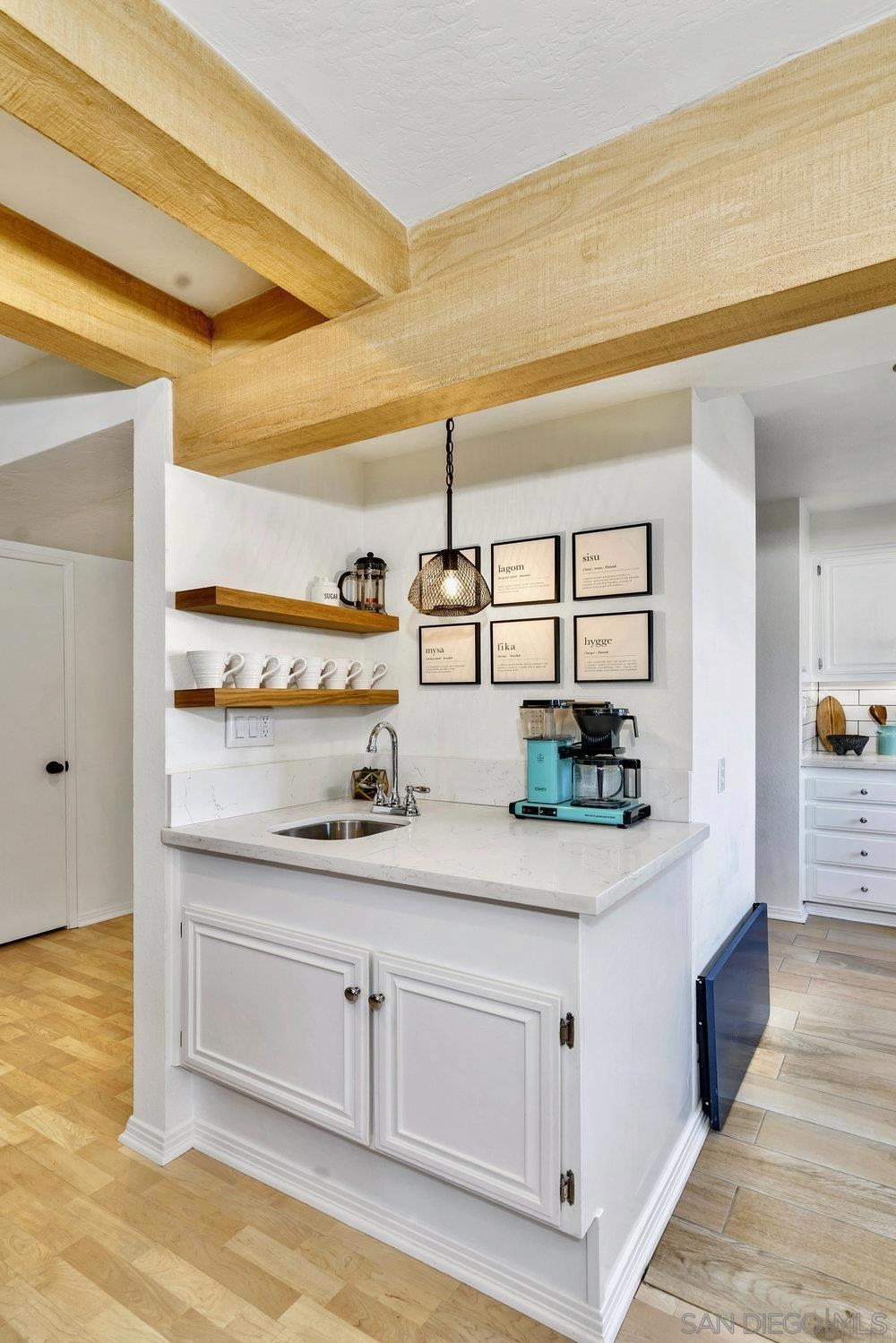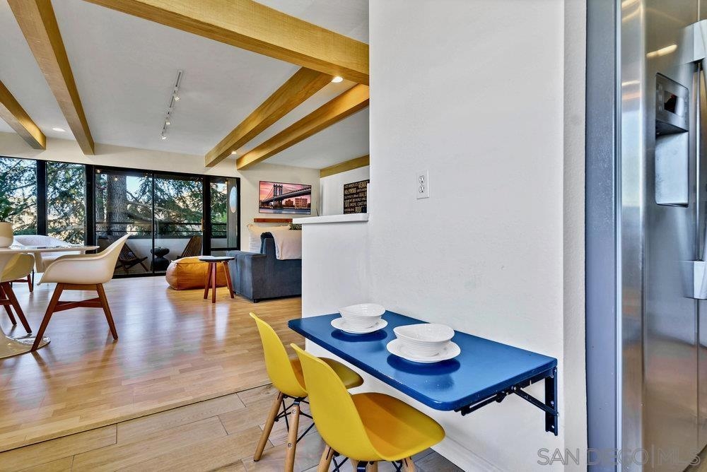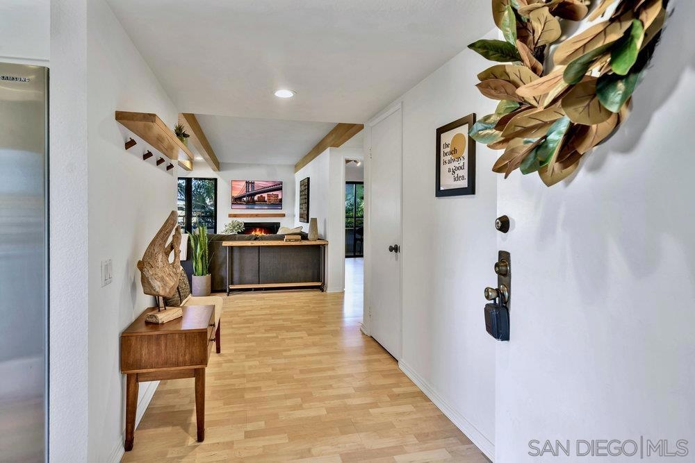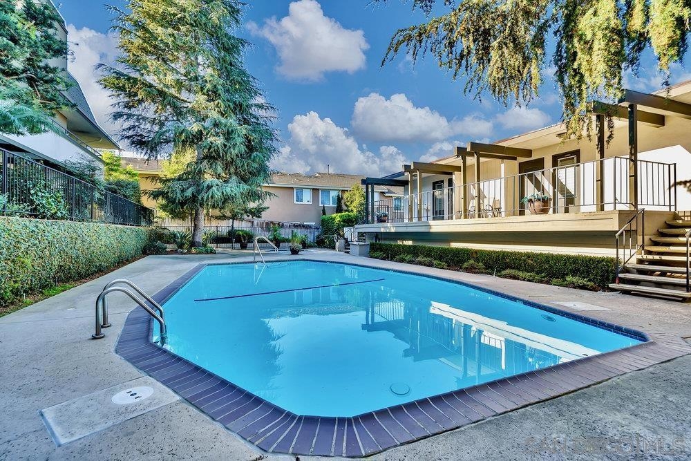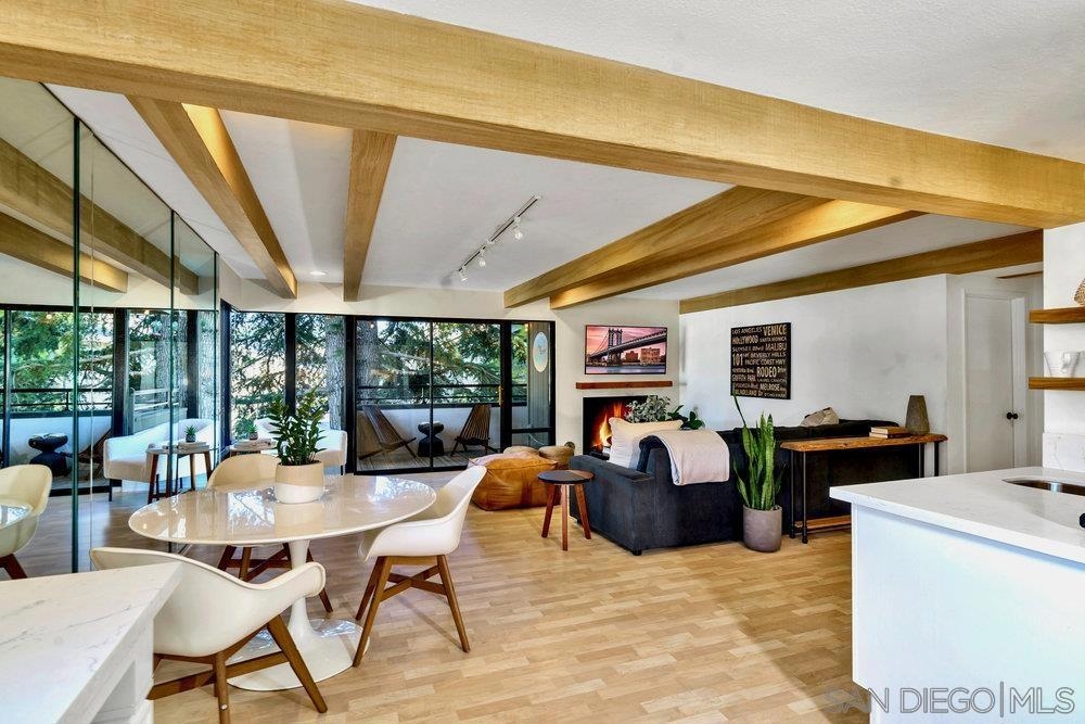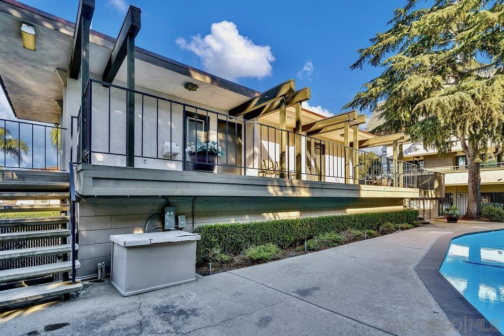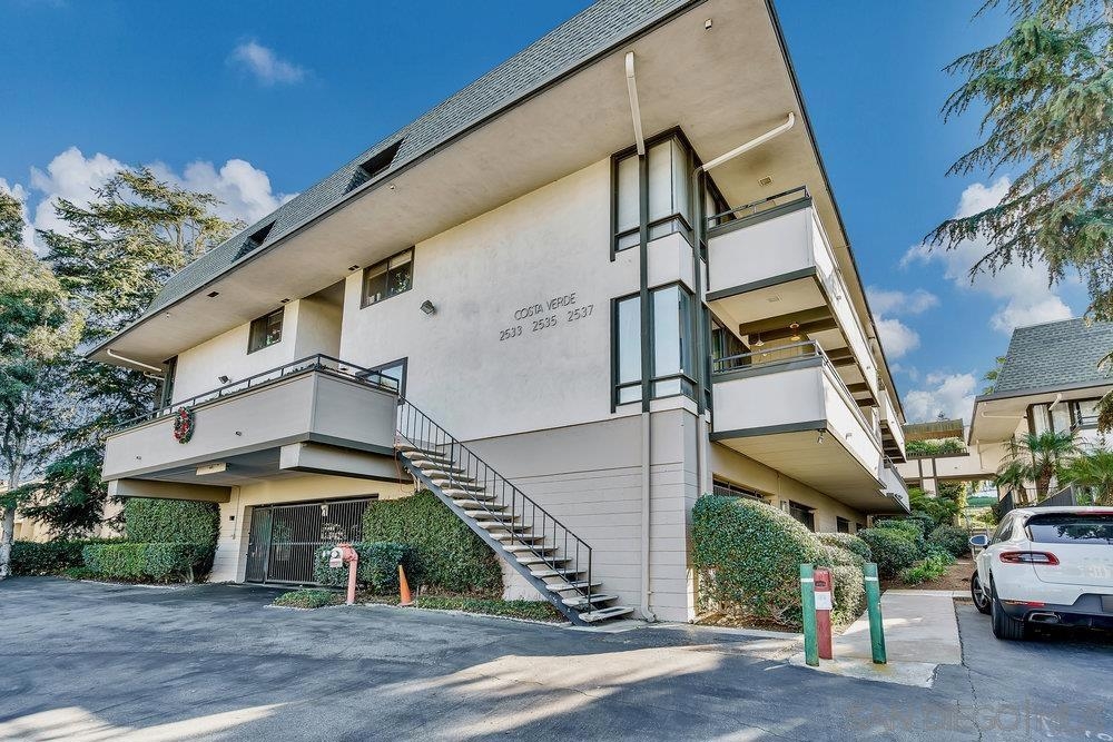 Dripping with character, this SWANKY rare single level mid century modern end unit can be yours. Nestled between the fairways of the Omni golf course, lagoon and La Costa Shopping, the location is premier. Featuring an enormous primary bedroom, open floor plan, 153 sf of balcony space, exposed brick, open beams, coffee bar, dual oversized primary closets, storage galore, a hidden office/creative space, views, garage and upgrades, you have it all! This is one story living with a new elevator SEE SUPPLEMENT... in the building too.The rare one car garage is a bonus and also includes a dedicated parking spot. There are several outdoor sitting areas, a community room, pool and sauna. Installed is a new $14k HVAC/AC and the community has a new roof. Strolling is great along the community and the greens are wonderful to see. A small complex of only 24 tiered units they are set up for complete privacy. Water and hot water are also included in the HOA.WELCOME HOME! This is one story living. The rare one car garage is a bonus and also includes a dedicated parking spot. There are several outdoor sitting areas, a community room, pool and sauna. Installed is a new $15k HVAC/AC and the community has a new roof. Strolling is great along the community and the greens are wonderful to see. In this small complex of only 24 tiered units, the homes are set up for complete privacy. Water and hot water are also included in the HOA. WELCOME HOME!