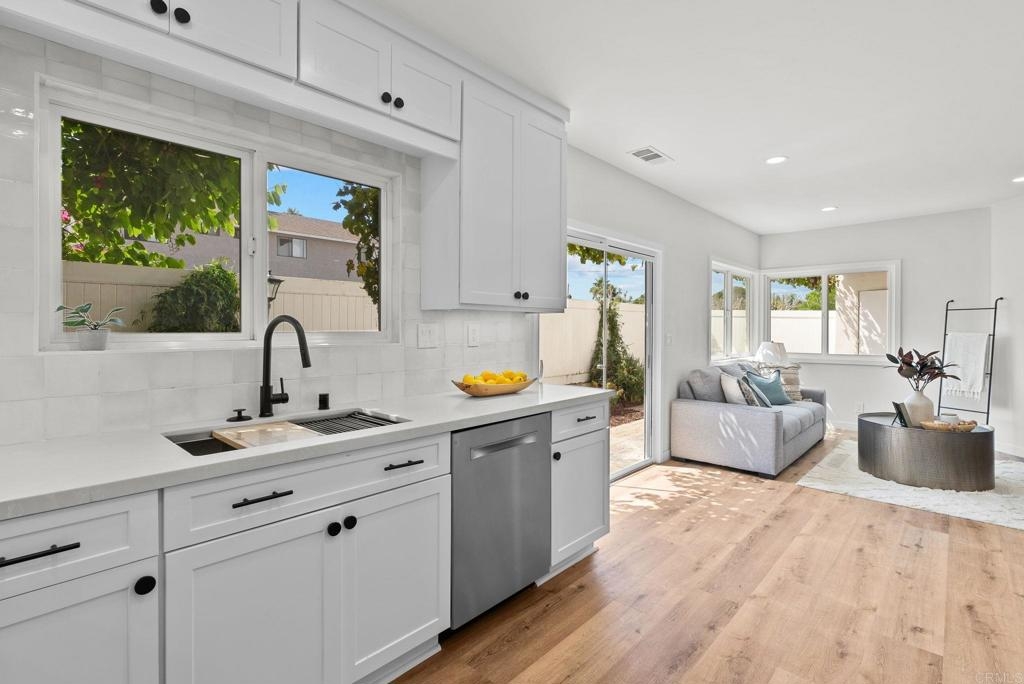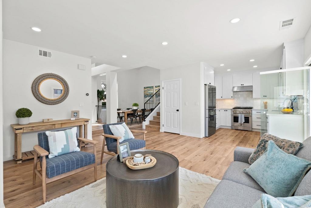 Welcome to your home at the BEACH! Located on Chestnut in the quiet community of Crystal Cove, this 6 unit complex is just a short walk to Tamarack Beach! The STUNNING two-story 1,605 sq ft townhome features 3 ample bedrooms, 2.5 updated baths and an oversized 2-car attached garage with laundry. With all NEW luxury vinyl plank throughout, fresh paint, a newly updated fireplace surround, new modern iron stair rail and new baseboards, this beach-close listing is just 1.5 blocks to the ocean and only 3.5 blocks to Carlsbad Village. A fabulously upgraded kitchen features quartz countertops, bright white cabinetry, opaque tile backsplash and top of the line stainless steel appliances. Upstairs you'll find a generous primary bedroom with a private balcony, a large walk-in closet and your gorgeous en-suite bathroom, featuring a slate shower enclosure, storage cabinet, oversized tile flooring, double vanity with updated fixtures, modern mirrors and towel-warming rack. Your two additional bedrooms boast vaulted ceilings and a spacious shared bath featuring a double quartz vanity and soaking tub. Enjoy warm summer nights on your private patio with white vinyl fencing, lush foliage, indoor-outdoor slate patio tiles and the peaceful sounds of your own water features. With its close proximity to everything "beach close" you're just within a short walk to the ocean, PCH/ Carlsbad Blvd., Michelin star restaurants, coffee shops, shopping, nightlife, biking and hiking trails and the Coaster. Both the 5 and 78 freeways are easily accessible, making travel a breeze. Make this beautifully updated townhome your new beach property before it's gone!