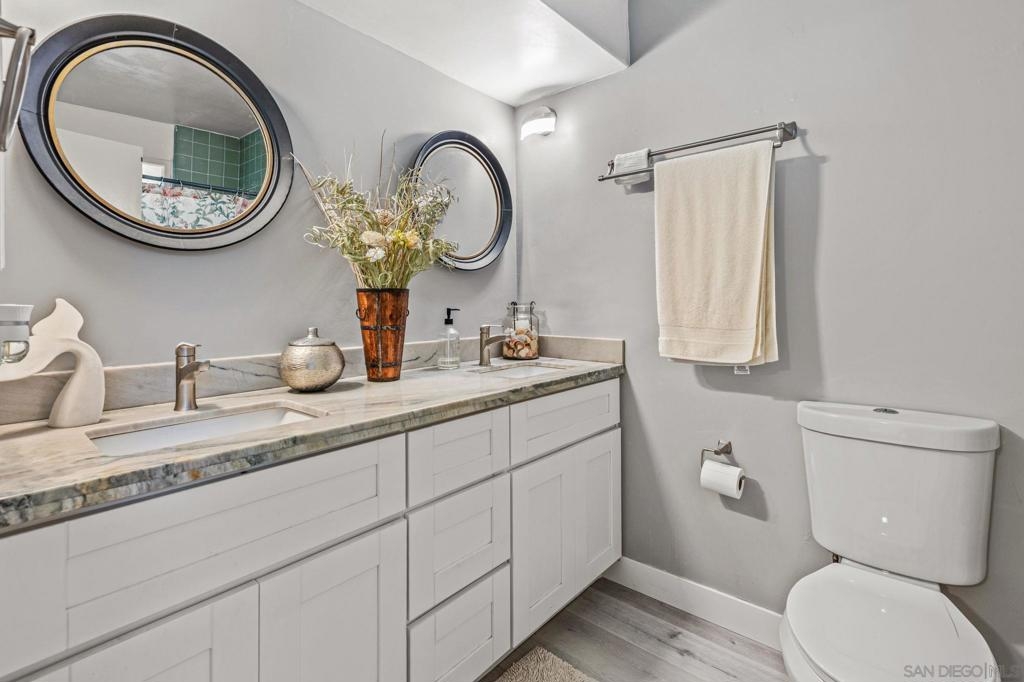 Experience refined coastal living in the heart of La Costa, Carlsbad. This beautifully updated 2-bedroom, 1.5-bath residence showcases a thoughtfully remodeled kitchen adorned with quartz countertops, sleek cabinetry, and stainless steel appliances, all complemented by elegant luxury vinyl plank flooring throughout. The light-filled, open-concept living area seamlessly extends to an expansive private balcony—an inviting space to unwind or entertain while enjoying tranquil golf course views. Both bedrooms are generously sized with ample closet space, and the bathrooms have been tastefully upgraded with contemporary finishes. Additional highlights include in-unit laundry, dual-pane windows, and two dedicated parking spaces for added convenience. Residents enjoy access to a well-maintained community featuring a pool, elevator, and guest parking—all ideally located just moments from pristine beaches, premier golf, dining, and the iconic Omni La Costa Resort.