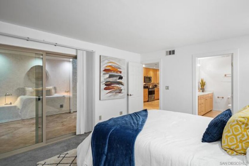**Preferred lender, will credit a 1 year, temporary rate buy down toward a qualifying homebuyer's purchase. Call for details** Living in a resort with breathtaking views is a dream come true. Sunsets and city lights, not to mention the beautiful Omni La Costa Golf Course, are some of the perks of this location. Step inside from one of three separate patios to find an updated kitchen outfitted with granite counters and brand new stainless steel appliances, as well as a living room and guest bedroom with floor-to-ceiling windows that look out over the golf course. Mirrored closet doors and a sparkling new custom jacuzzi tub await you in the master bedroom's luxurious ensuite bathroom. It has a full-size washer and dryer, air conditioning, three separate patios, and a large amount of storage space. This desirable area is close to a variety of amenities, including the beach, La Costa Resort & Spa, excellent restaurants, shopping, easy access to major thoroughfares, and the well regarded schools of San Dieguito. Fantastic place to live, visit, or put your money!