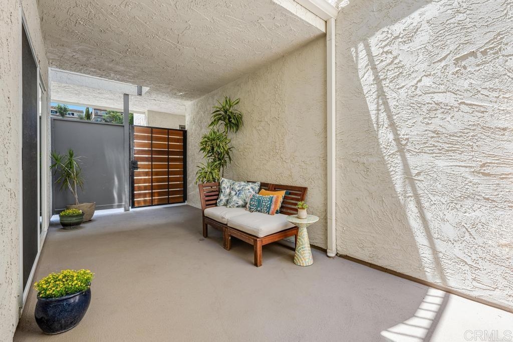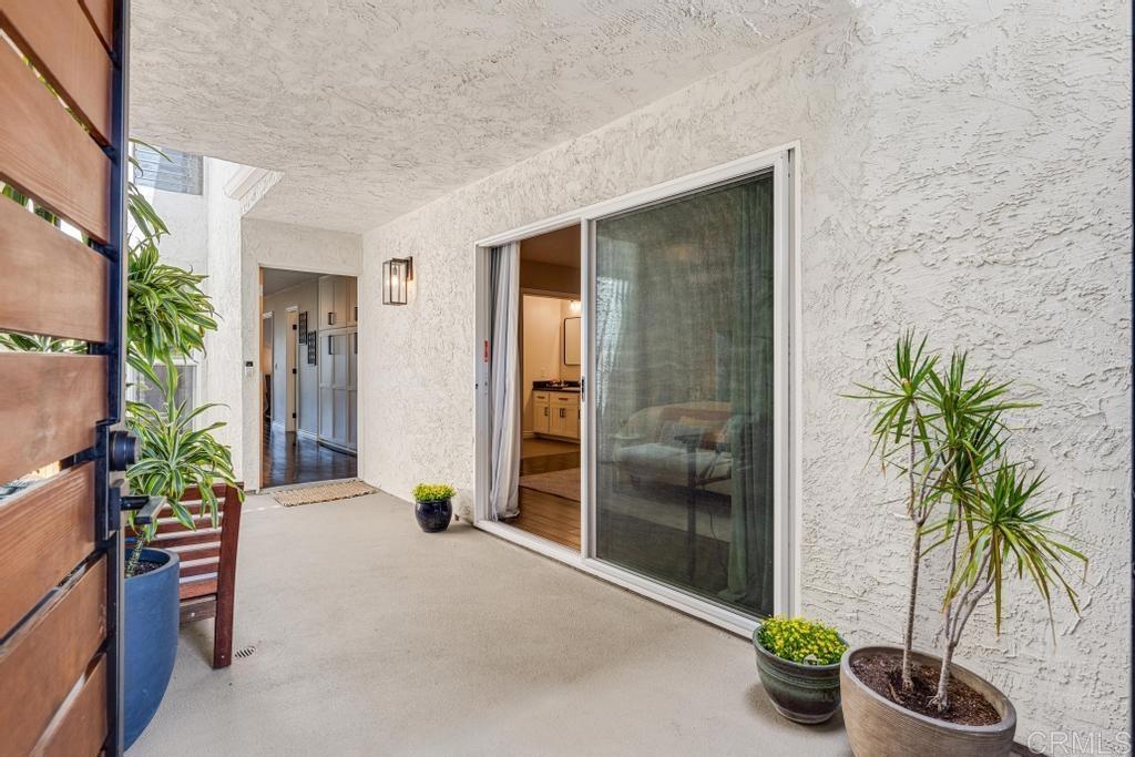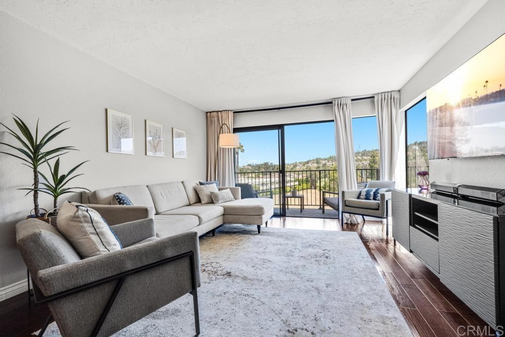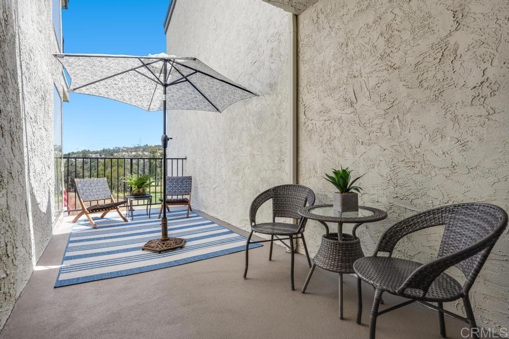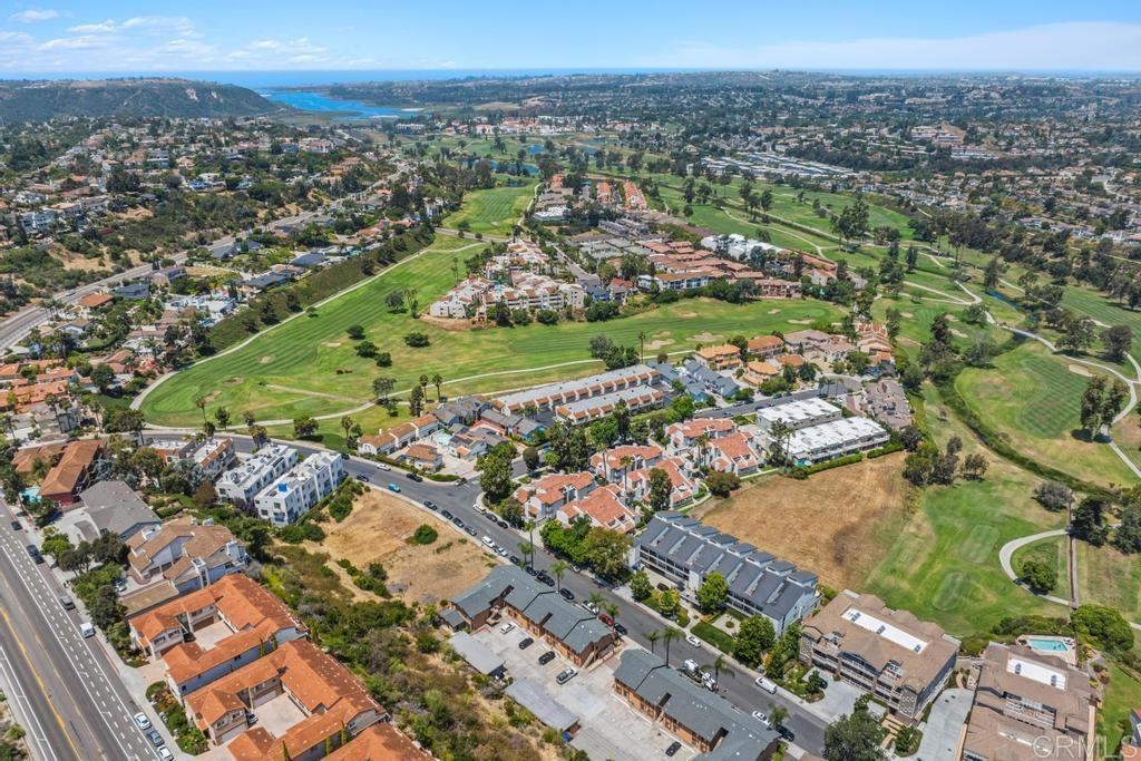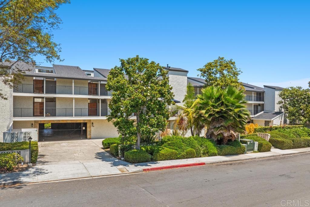 A must see and move in ready. This home has been beautifully updated with contemporary touches throughout and has views overlooking the 15th Tee and 13th & 14th holes of the Omni La Costa Resort Golf Course! This 2-bedroom home offers plenty of natural light through the large glass doors from the 2 back balconies, showing off the views as soon as you open the front door. The remodeled craftsman kitchen includes granite countertops, stainless appliances, extensive storage cabinets and wood floors throughout the home. The spacious Primary Bedroom with large sliding glass doors give access to the private front courtyard, making it a great outdoor retreat space. It also offers a modern en-suite bathroom with 2 separate vanities and sinks, a shower/tub, and plenty of linen storage area. The Secondary bedroom also includes a very large 3rd patio/balcony, with direct views overlooking the golf course. Other features include a gated parking garage with two dedicated extra wide spaces centered between 2 columns and an electric car charging station connected directly to your electric meter. A washer & dryer closet is located within the home for your convenience and the building also has a common laundry facility for the 16 units. The Gibraltar Villas building has been tastefully updated over the past several years, has an elevator and has very nice curb appeal with large trees shading the building. A common area for sunning / sitting is above street level for owners to use. Only a few remaining HOA projects remain and are scheduled (Bldg Elect Upgrade; Fire Alam system; New Elevator). Close to all—highly rated schools, shopping, movies, popular restaurants and only approximately 5 minutes from the beach and trails.