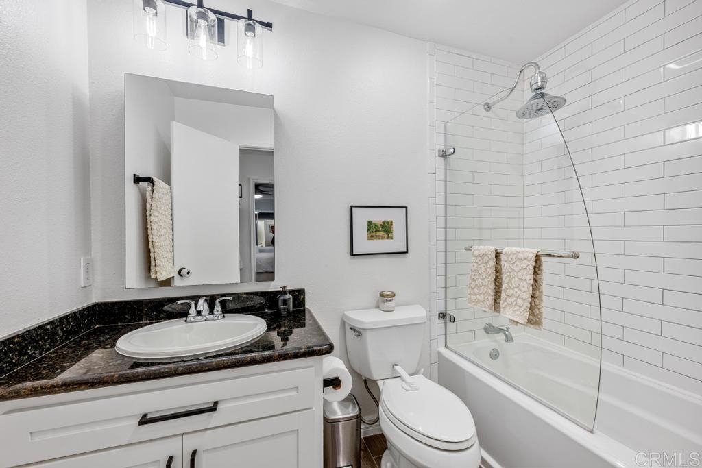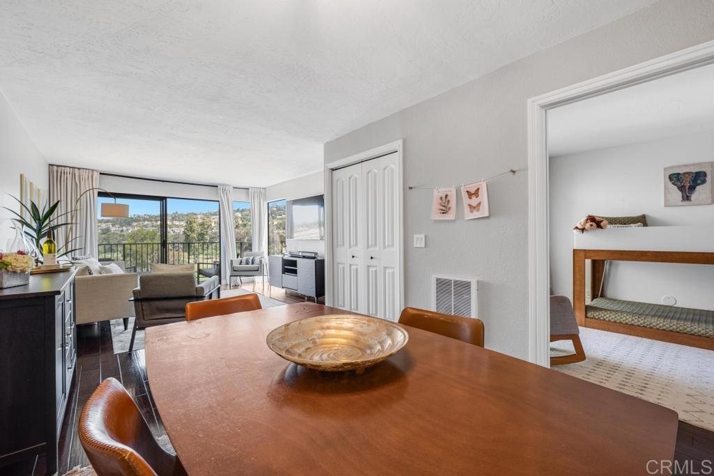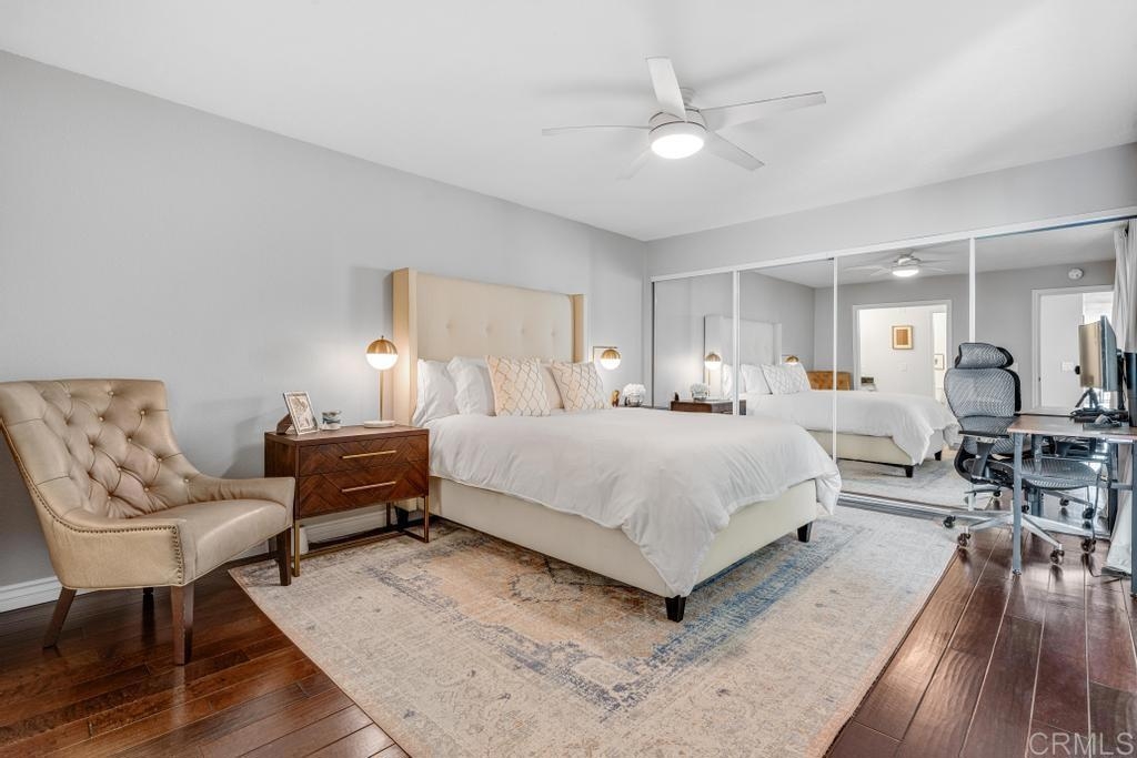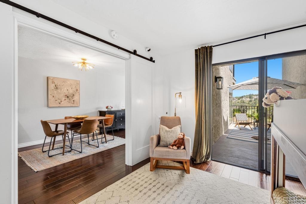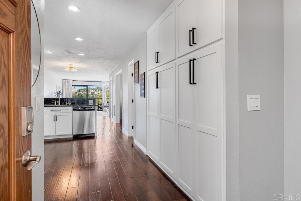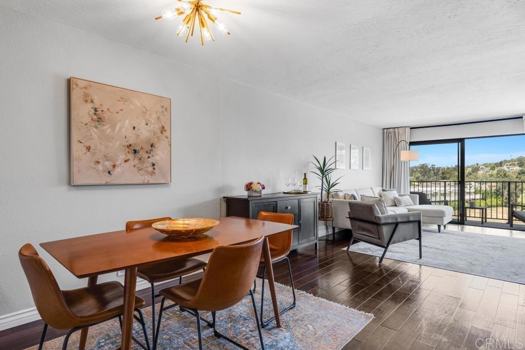 A must see and move in ready. This home has been beautifully updated with contemporary touches throughout and has views overlooking the 15th Tee and 13th & 14th holes of the Omni La Costa Resort Golf Course! This 2-bedroom home offers plenty of natural light through the large glass doors from the 2 back balconies, showing off the views as soon as you open the front door. The remodeled craftsman kitchen includes granite countertops, stainless appliances, extensive storage cabinets and wood floors throughout the home. The spacious Primary Bedroom with large sliding glass doors give access to the private front courtyard, making it a great outdoor retreat space. It also offers a modern en-suite bathroom with 2 separate vanities and sinks, a shower/tub, and plenty of linen storage area. The Secondary bedroom also includes a very large 3rd patio/balcony, with direct views overlooking the golf course. Other features include a gated parking garage with two dedicated extra wide spaces centered between 2 columns and an electric car charging station connected directly to your electric meter. A washer & dryer closet is located within the home for your convenience and the building also has a common laundry facility for the 16 units. The Gibraltar Villas building has been tastefully updated over the past several years, has an elevator and has very nice curb appeal with large trees shading the building. A common area for sunning / sitting is above street level for owners to use. Only a few remaining HOA projects remain and are scheduled (Bldg Elect Upgrade; Fire Alam system; New Elevator). Close to all—highly rated schools, shopping, movies, popular restaurants and only approximately 5 minutes from the beach and trails.