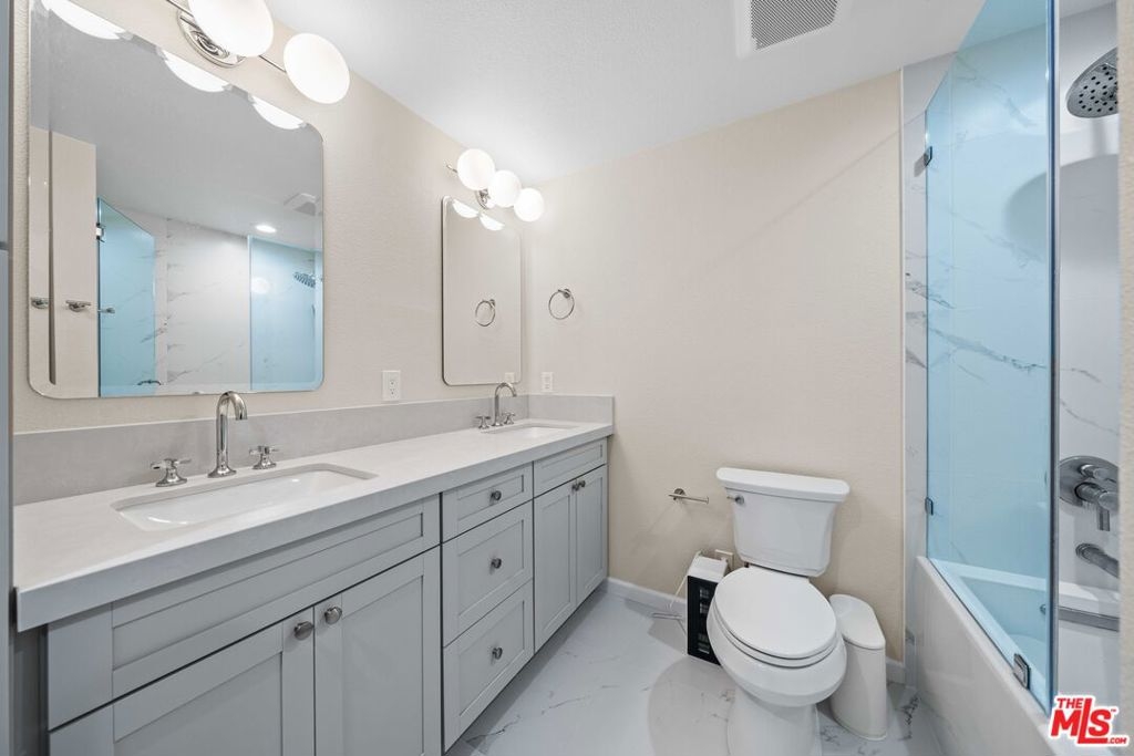 This pristine 2-bedroom, 2-bathroom, single-level condo offers stunning golf course views of the La Costa Resort & Spa in a tranquil La Costa setting. The updated home features a remodeled kitchen with quartz countertops, new shaker-style cabinets, and all updated appliances. The entire unit also boasts new windows and sliders, as well as ductless heating and AC. The spacious master suite features a custom walk-in closet and direct access to a private patio. The Master bathroom was thoroughly remodeled and includes shaker-style cabinets, quartz countertops, a new tub, porcelain tile, and updated fixtures. An in-unit washer and dryer are also included. The guest bathroom offers porcelain tile floors and shower walls, a marble shower floor, and updated fixtures. Other updates include the replacement of all interior doors with solid core doors and new pantry cabinet doors.This upper-level condo, accessible by elevator (recently updated), includes two balconies, ample storage space, and two designated parking spaces in a gated garage. The building also recently repaved the front and back balconies, painted the exterior, and replaced all gate doors and handrails.Located within the San Diego/Encinitas School District. Trash and water are included in the HOA.