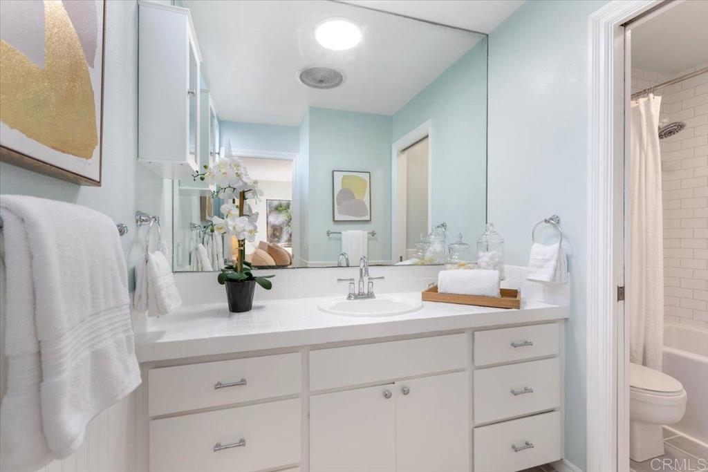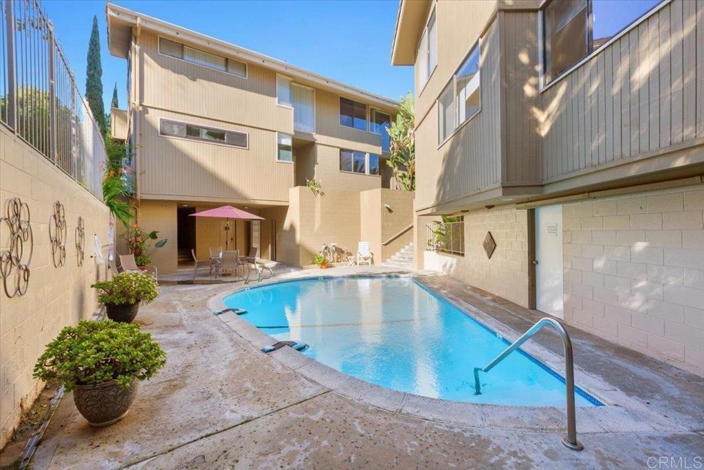 IMMACULATE SINGLE LEVEL UNIT, WITH PRIVATE OUTDOOR SPACE, IN THE GOLF CREST GATED COMMUNITY! Enjoy living in vibrant Carlsbad California, where convenience meets comfort in a quiet neighborhood near Omni La Costa resort and is located in the community of Golf Crest. This delightful home features a 1 bedrooms and 1 full bath across a thoughtfully designed 1041 square ft of living space. Bright custom kitchen comes equipped with hickory color hardwood flooring, upgraded kitchen cabinets and quartz countertops for an updated space saving combination kitchen with stainless steel appliances--fridge included. A/C and heat provided through split unit. Adding to the appeal is the convenience of a one-car garage plus an additional parking space. This unit features a private outdoor space. Beautiful resort-style amenities include a community pool and residents can enjoy the best of both worlds – the tranquility of a gated community and the vibrant offerings of this coastal city in Southern California which is close to shopping, restaurants, freeways and more. This Carlsbad home is more than just a residence; it's an invitation to a lifestyle of comfort, convenience and community. HOA covers sewer and trash. Seller to select services. Room dimensions & sq footage are approximate, per builder & assessor's record.