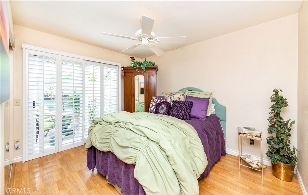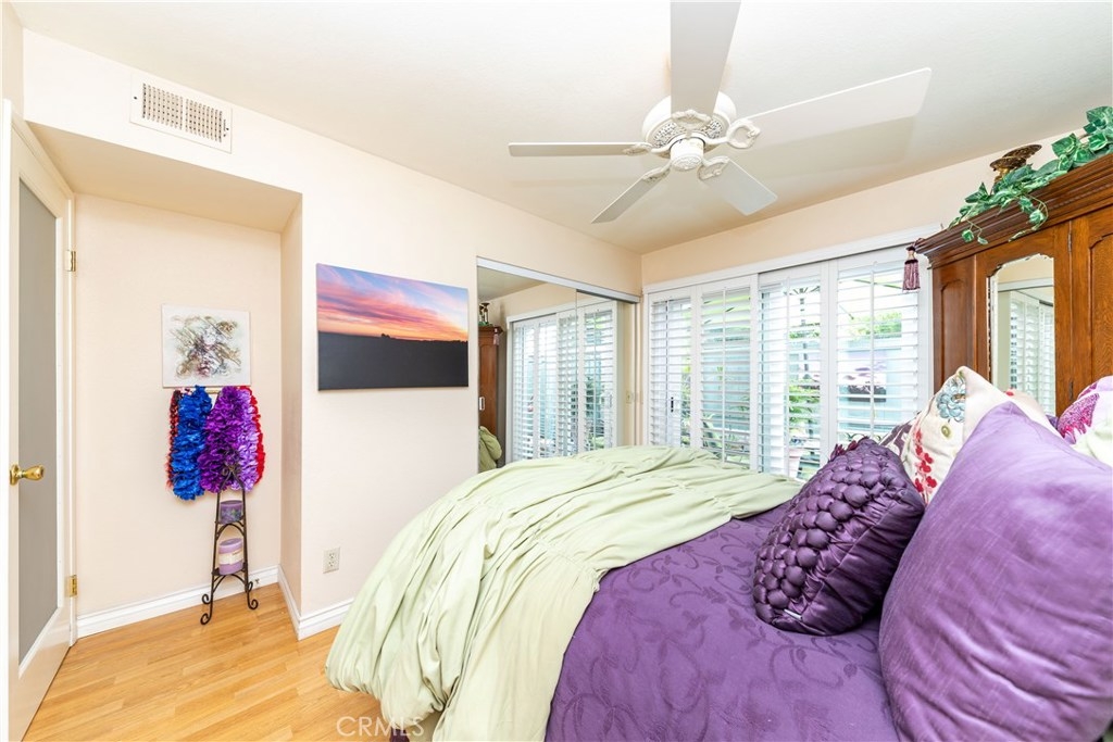 Stunning 2 bedroom / 1 bathroom condo, ground floor, WEST of I-5 and approx. 1 mile to the beach, right in Carlsbad Village! Completely remodeled! Beautiful hardwood laminate flooring throughout. Every window has been replaced with Milgard Classic retrofit dual-paned. Marble counter tops in kitchen with custom cabinetry, canned lighting, new custom kitchen window over sink for a nice afternoon breeze, all stainless steel appliances. Stackable washer/dryer stay, lovely back patio for privacy and relaxation. Upgraded paneled interior doors. Both bedroom doors have privacy glass for added natural light. Master bedroom has slider out to patio, mirrored closet doors with custom closet organizer and upgraded ceiling fan. Secondary bedroom has paneled closet door, upgraded ceiling fan, custom closet organizer and a upgraded wall bed that stays. There is storage which can be directly accessed from second bedroom or outside. The beautiful bathroom has marble topped vanity, custom travertine shower/tub combo with glass doors and grab bars and canned lighting.Shutters on living room and both bedrooms. Each Unit has 2 assigned parking spots, one is covered. Newer water heater. This is too good to believe.