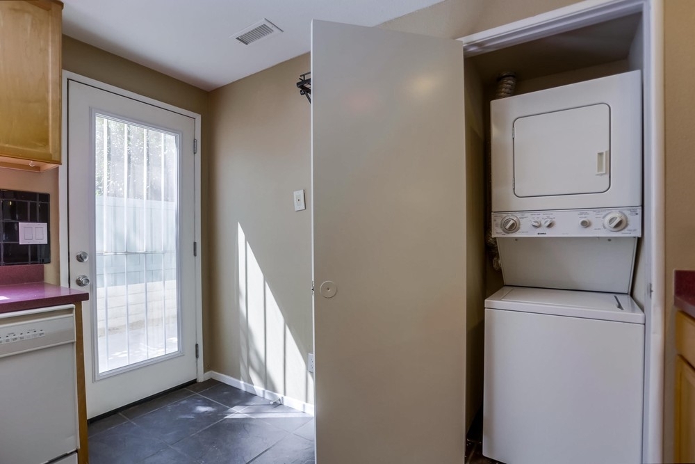 Location, location! Lovely first floor condo within walking distance from Carlsbad Village, beach and restaurants. Light and bright with ceiling fans and large windows, this beautiful unit includes gas stove, stainless fridge & in- unit stackable washer/ dryer. Private back patio with two assigned parking spaces and a storage unit round out this well appointed home. Location, location! Lovely first floor condo within walking distance from Carlsbad Village, beach and restaurants. Light and bright with ceiling fans and large windows, this beautiful unit includes gas stove, stainless fridge & in- unit stackable washer/ dryer. Private back patio with two assigned parking spaces and a storage unit round out this well appointed home.. Neighborhoods: Carlsbad Village Other Fees: 0 Sewer: Sewer Connected Topography: LL