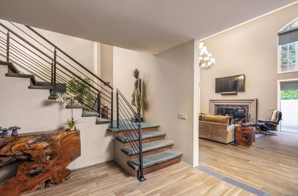 Welcome to the highly sought-after community of The Jockey Club in La Costa, where you will find this rarely available, exquisitely upgraded and maintained private 3 bedroom, 3 bathroom home. At 3,663 sqft, this home is the largest floor plan in the community with dramatic 20 ft ceilings and impressive skylight that beautifully illuminates the center of the home. The entry level bedroom, currently used & pictured as a gym, has a newly updated en-suite bathroom with shower and closet. Upstairs are two additional over-sized bedrooms with upgraded en suite bathrooms, closets, showers and plenty of storage. The huge primary bedroom suite is a true retreat. Relax and rejuvenate in your Zen-like bathroom that feels like your own personal luxury spa with a huge two-person shower and separate soaking tub. Many upgrades throughout such as fully remodeled bathrooms including the primary and 2 secondary full bathrooms, kitchen, high-end porcelain tile flooring, updated HVAC, Quietcool whole house fan, extended laundry room, 12’ walk-in pantry, full LED dimmable lighting, security system, soft water facility plus dedicated level-2 electric car charging capability. Secure gated entrance with manned greeter/security makes this home perfect for the lock & leave lifestyle or a second home. Community amenities include a 50’ pool, spa, new clubhouse and a very active HOA w/ events and social calendar. The Jockey Club is perfectly positioned minutes from local restaurants and supermarkets and benefits from rare direct walking and golf cart access to the famed Omni La Costa Resort Golf course including the resort's spa, golf, tennis and dining.