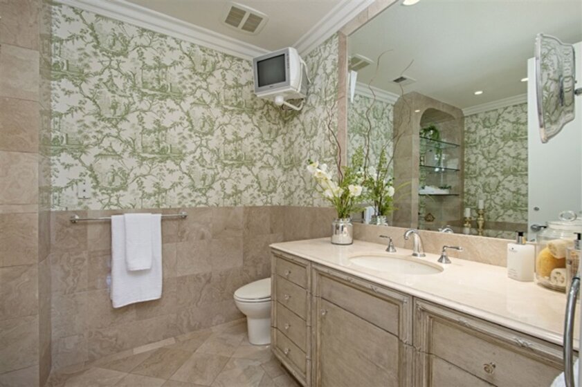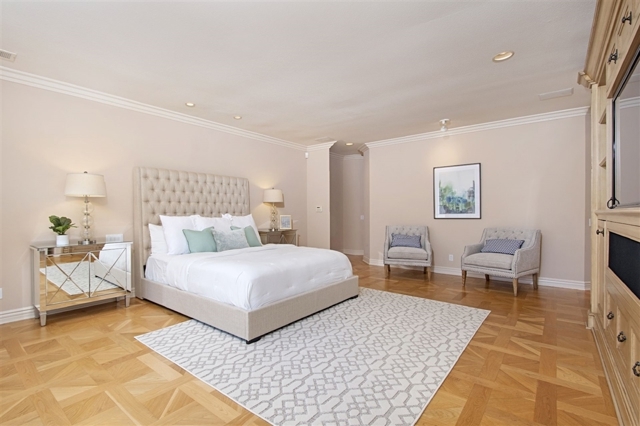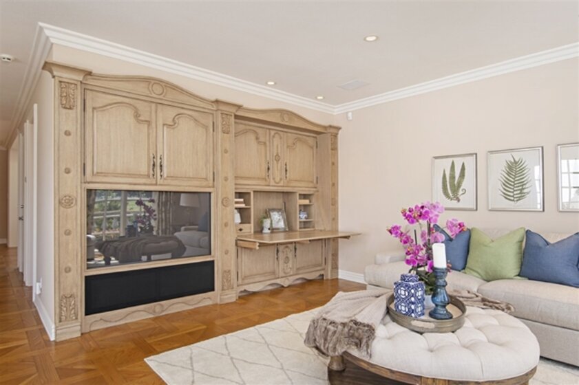 No expense was spared on this beautifully remodeled Omni La Costa Golf Course frontage townhouse at the prestigious gated Jockey Club. With 3336 Sf of spacious living and 20ft. plus ceilings and soaring windows, this French designed luxury home offers gourmet kitchen, European oak flooring, custom cabinetry, motorized and designer window coverings and wall treatments throughout. If you are looking for a showcase view home with an easy care lifestyle and a secure community, you will not be disappointed. With more than $400,000 in upgrades you will appreciate the quality and architecture of this home as soon as you enter through the double-wide front doors to the light and spacious entry and living room with a custom cast fireplace mantle and staircase with gorgeous wrought iron railings with brass capping. The family room with sweeping views of the Omni La Costa Golf Course offers custom built-in cabinetry, stately arched windows with motorized shades, custom drapes and sliding doors to the large view patio for entertaining or just relaxing. You will love the Marie Antoinette oak wood flooring, crown moulding and baseboards throughout the downstairs and upstairs. The enlarged gourmet kitchen offers eating area, custom cabinets from Euro Concepts with and top-of-the line Subzero, Viking and Miele appliances. The kitchen also has a sliding door that leads to the golf course frontage patio. The powder room downstairs has been remodeled with an imported Italian hand crafted and painted patina chest and beautifully etched glass basin. Upstairs you will find two spacious bedrooms. The guest bedroom with designer wall covering and shades offers views of the golf course. The guest bathroom has been completely remodeled with Le Palace spa tub, marble flooring and new cabinetry. The master bedroom with golf course view is appointed with custom motorized draperies, built-in wall unit with TV and small built-in SubZero and an oversized walk-in closet with built-ins ...
