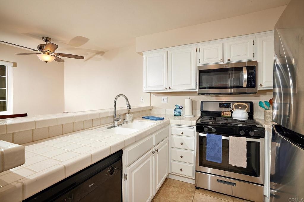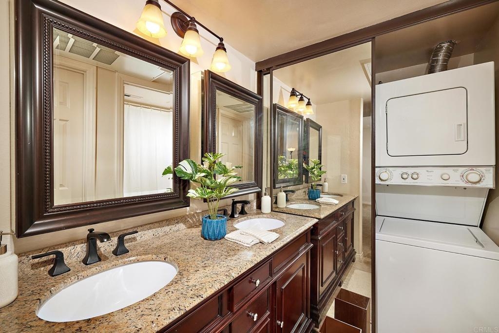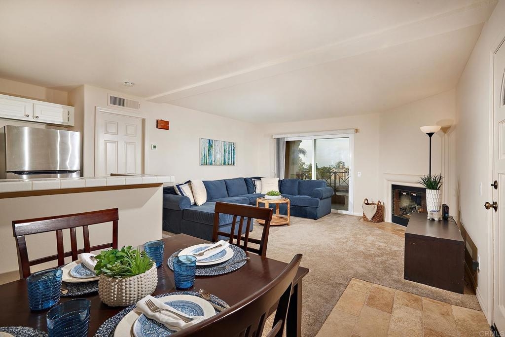 Gorgeous 1-bedroom single level home in the beautiful community of La Costa Alta! Fantastic ocean views from this second story home, wonderful sunsets! Great location close to the beach, restaurants, shopping and entertainment. Lovely kitchen with a gas stove, bar stool counter, great storage and newer appliances. Central air conditioning plus ceilings fans and ocean breezes! Dual pane windows and new carpeting. Stacked washer and dryer in convenient laundry within home. Large dining area and living room. Cozy gas fireplace in living room. Spacious walk-in closet and plenty of storage. Large balcony off the living room with lovely ocean views. Beautiful community pool, spa, gym and clubhouse. Water and trash included in HOA fee. Incredible amount of storage with a room off the balcony and a large private storage room downstairs. One assigned carport.