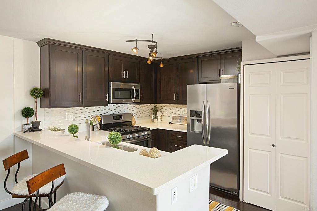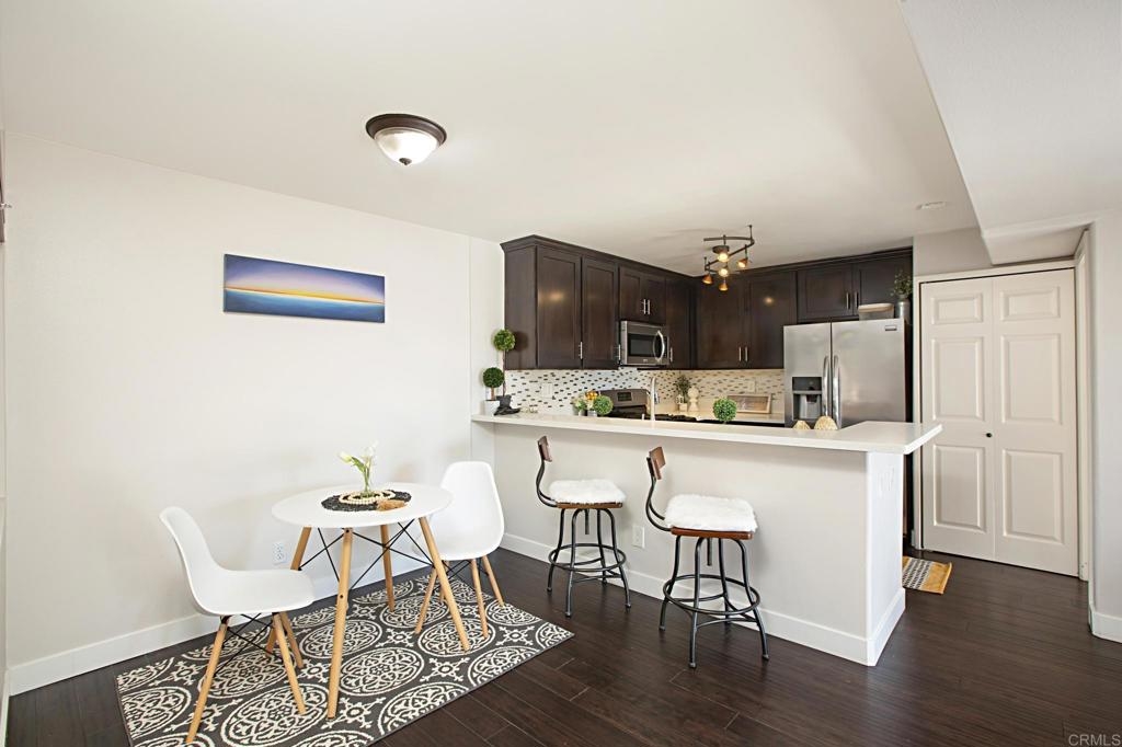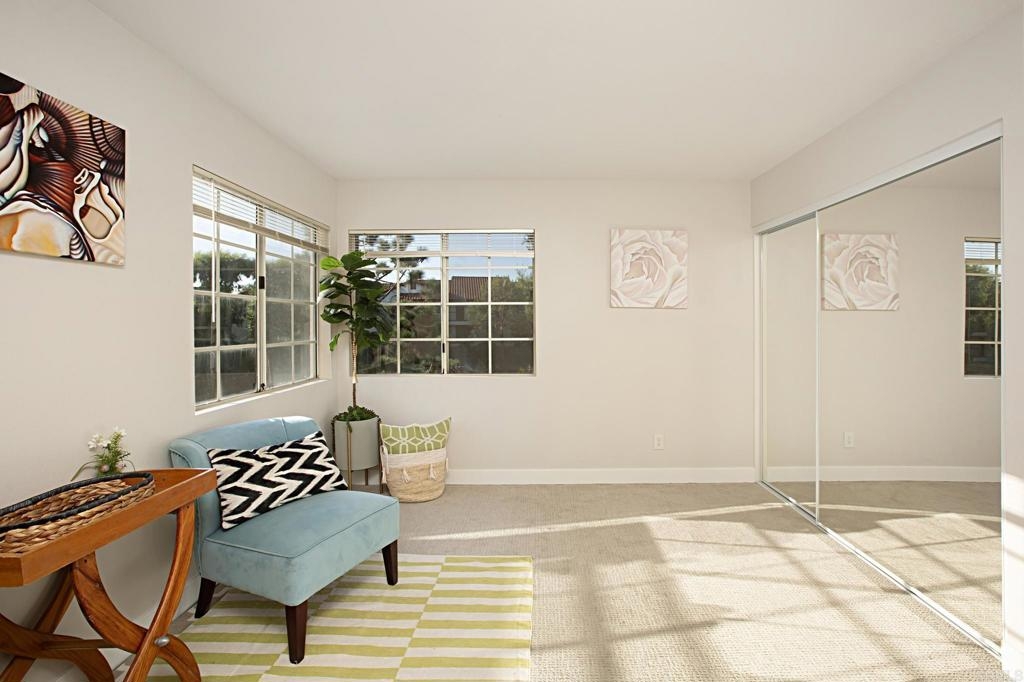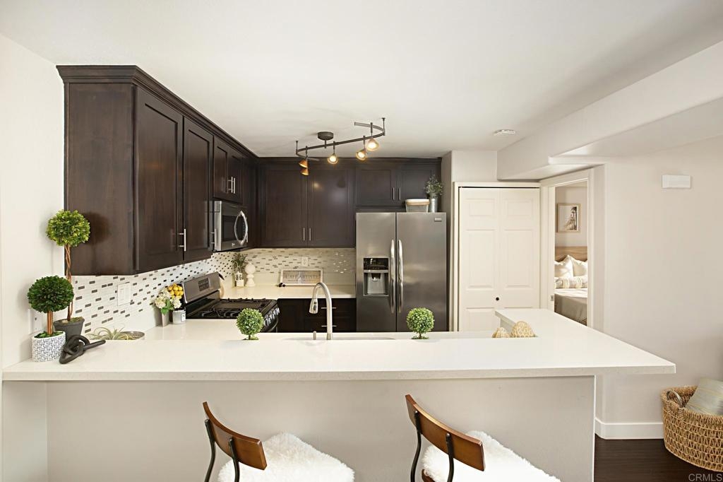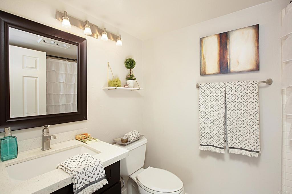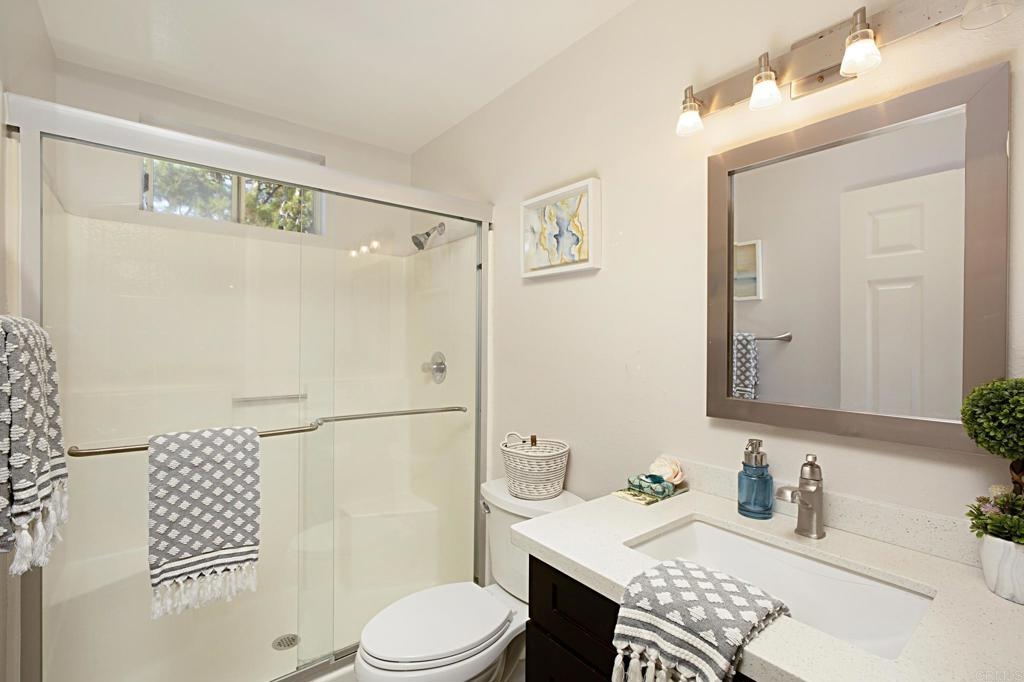 Live like you're on vacation at La Costa Alta in South Carlsbad. The open concept, remodeled, single level floor-plan is light & bright with no stairs. Extra privacy is provided by a primary bedroom w/ ensuite bathroom on one side of the home separated by the Living room and updated kitchen & dining area. The opposite side is a guest bath and another large bedroom. The remodeled kitchen has newer appliances, lighting and counters. You can entertain guests at the kitchen counter or the dining area. Eucalyptus hardwood floors cover the main living area of the home with newer carpet in each of the bedrooms and several roomy closets. A large sliding glass door takes you from the Living room out to a large covered patio. You also have a private door to the patio from the primary bedroom. This patio makes the property feel much larger and gives you an opportunity to enjoy the amazing Carlsbad weather. The patio has westerly facing views to take in amazing sunsets and the ocean on the horizon. As you enter the palm tree lined drive up past the La Costa Alta clubhouse, gym & pool; it feels like you're on vacation. Also a community conference / meeting area is available for residents to utilize. One of the better gyms, the private workout center is steps away from this unit.. This property also provides an oversized garage with storage area in front. Another walk-in storage closet is perfect for all your recreational equipment. A designated parking spot is just feet from the front door. Everything is on one level with exception to the garage. Walkable to La Costa Meadows Elementary. Restaurants, grocery stores, theatres, banks and everything in between are under 5 minutes away. Easy commute to either main interstate. A perfect community tucked into the La Costa Hills and ready for you to enjoy.