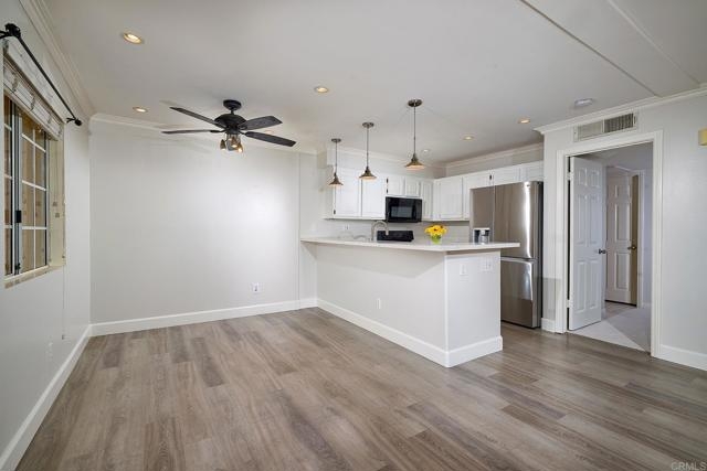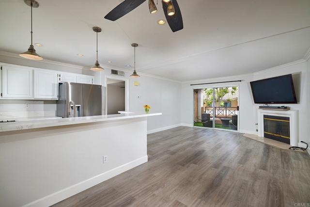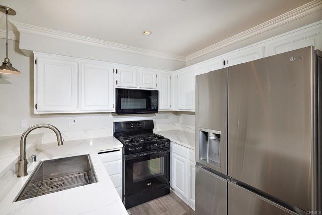 Clean, Move-In ready unit in prime location. Renovated kitchen features quartz countertops, recessed & pendant lighting, new refrigerator, new dishwasher, gas stove/oven and microwave. Enjoy the living room fireplace and abundance of natural light from the large glass sliders that open onto the covered patio complete with storage closet. Unit comes with the huge advantage of having a garage parking spot and one assigned parking spot at front door level. Additional private storage locker on side of garage. New LG stackable washer & dryer. Community offers pool / spa, gym. Prime location just blocks from top-rated La Costa Meadows Elementary, close to Bressi Ranch, Carlsbad beaches and over the hill from Cal State San Marcos University & Kaiser Hospital.