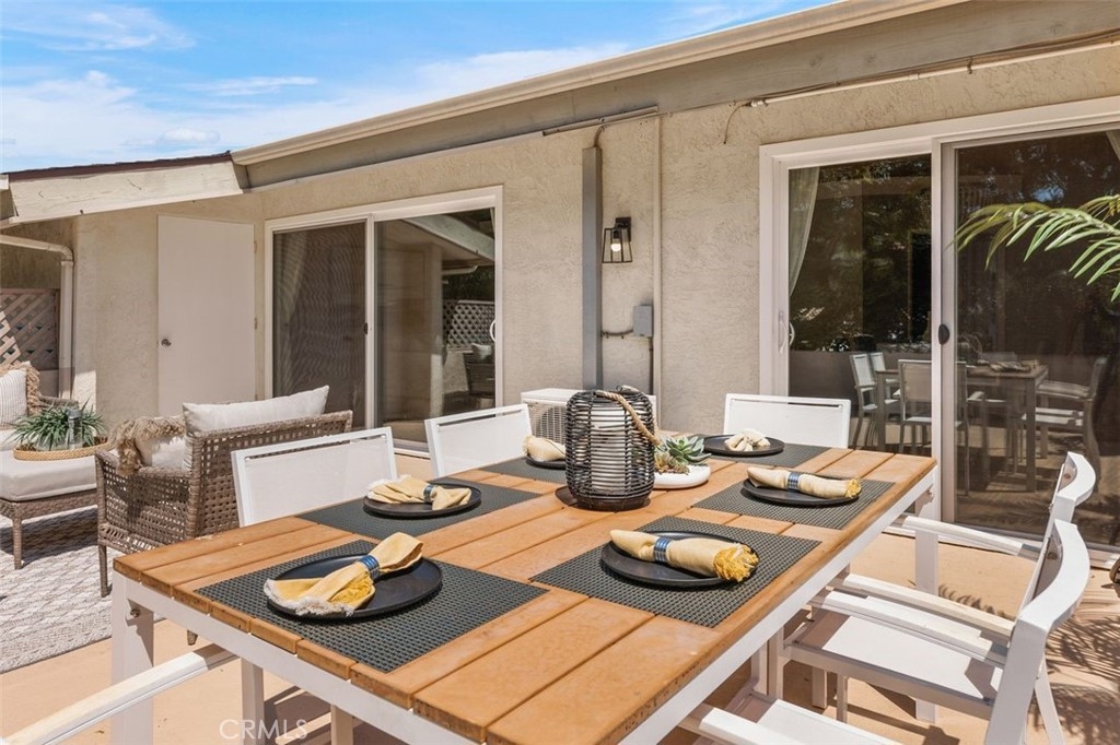 Resort Style Living in the development of La Costa Fairways! Beautifully updated and exceptionally spacious, this two bedroom, two bathroom condominium home offers indoor/outdoor living with a modern open concept, vaulted ceilings and an abundance of natural light shining through the expansive windows. Outdoor patio is approximately 400sf, perfect for gatherings and entertaining. Kitchen features granite countertops, integrated trash receptacle, and a pantry. The expansive primary bedroom features vaulted ceilings and an updated en-suite bathroom. Additionally, a generously proportioned secondary bedroom. Private storage and laundry room closets are located on the patio. This home is conveniently located near the Omni Golf Course Resort, Beaches, Dining, and Great Shopping! Sewer connected, Public Sewer Topography: LL