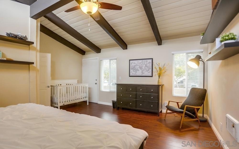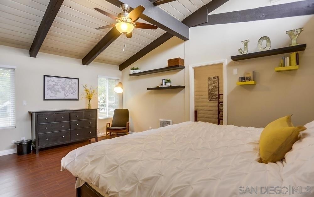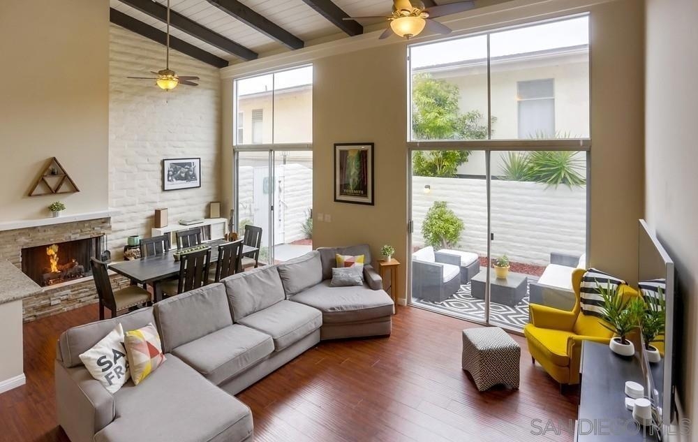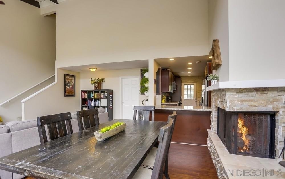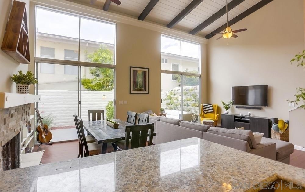 Come see this stunning, upgraded La Costa townhome! Once you walk through the doors, you are greeted with an abundance of natural light that amplifies the beauty of this home. The open floorplan features wood laminate flooring, vaulted ceilings with beautiful wood beams and gorgeous exposed brick walls throughout. Enjoy sitting by the fireplace in the living room, or open the oversized sliding doors to a spacious private patio that's perfect for both relaxing and entertaining. Upgrades in the kitchen include travertine tile floors, granite countertops and stainless steel appliances. A cozy full bedroom and updated bath is on the main level, while the large master suite upstairs features the same gorgeous vaulted and wooden beamed ceiling. Breathe in fresh air from the private balcony. The master bathroom has also been updated with a luxurious walk-in shower, dual vanity sinks and walk-in closet. Located on the La Costa Golf Course and surrounded by shops and restaurants, this is a wonderful place to call home. Buyer/Buyer's Agent to verify all MLS information including, but not limited to, square footage, room measurements, property tax info, HOA info, and school info, prior to removing all contingencies.