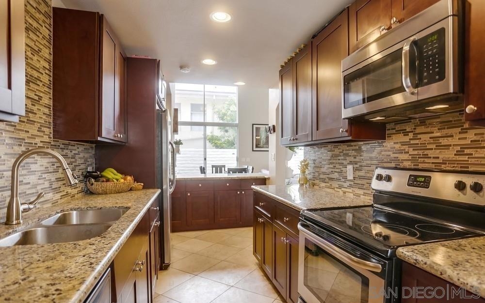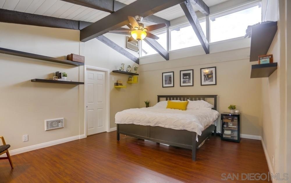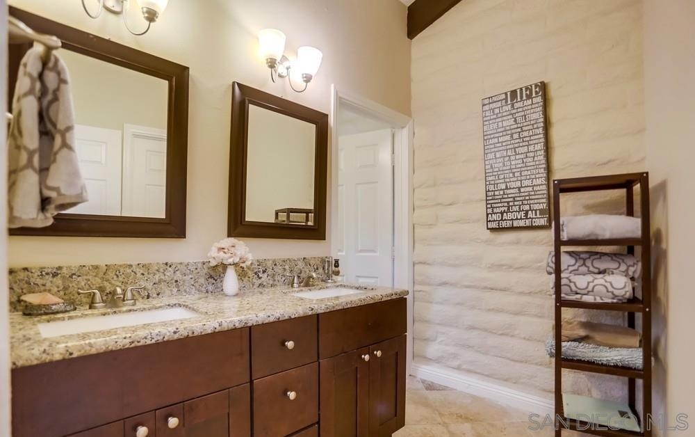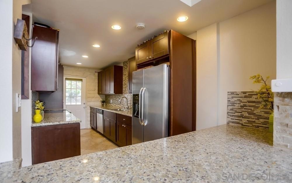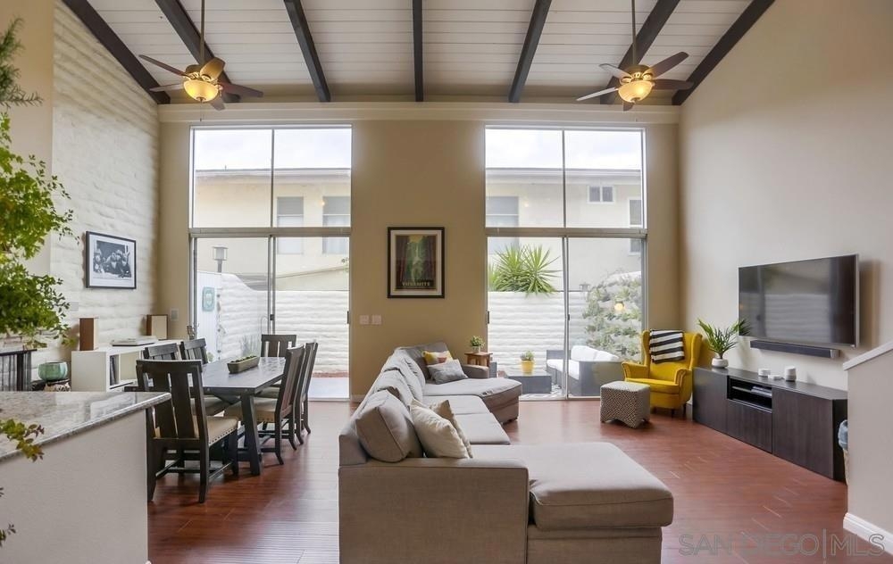 Come see this stunning, upgraded La Costa townhome! Once you walk through the doors, you are greeted with an abundance of natural light that amplifies the beauty of this home. The open floorplan features wood laminate flooring, vaulted ceilings with beautiful wood beams and gorgeous exposed brick walls throughout. Enjoy sitting by the fireplace in the living room, or open the oversized sliding doors to a spacious private patio that's perfect for both relaxing and entertaining. Upgrades in the kitchen include travertine tile floors, granite countertops and stainless steel appliances. A cozy full bedroom and updated bath is on the main level, while the large master suite upstairs features the same gorgeous vaulted and wooden beamed ceiling. Breathe in fresh air from the private balcony. The master bathroom has also been updated with a luxurious walk-in shower, dual vanity sinks and walk-in closet. Located on the La Costa Golf Course and surrounded by shops and restaurants, this is a wonderful place to call home. Buyer/Buyer's Agent to verify all MLS information including, but not limited to, square footage, room measurements, property tax info, HOA info, and school info, prior to removing all contingencies.