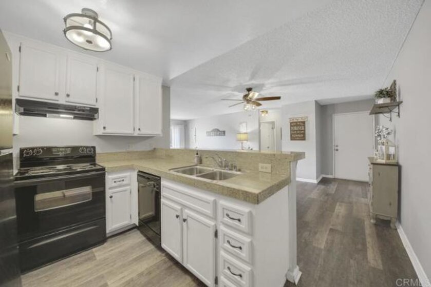 SINGLE LEVEL TOWNHOME in the sought-after community of La Costa Hills. This community has excellent amenities which include: gated complex entry, updated pool and spa, sauna, lighted tennis court, fitness center, and clubhouse. This condo is a second-story single-level end unit that overlooks a greenbelt area and a view of surrounding hills. The interior features new luxury vinyl plank flooring and light interior touch-ups. The floor plan is well laid out with dual master suites, a stackable full-sized laundry location, a walk-in kitchen pantry, a cozy brick fireplace in the living area, one car garage, and an assigned parking space. Walkability to nearby trails, 2 shopping centers, and Carlsbad District schools. Stagecoach Park is within walking distance with a large playground area, open space, sports fields, basketball courts, gym, picnic areas, and annual summer concert series.