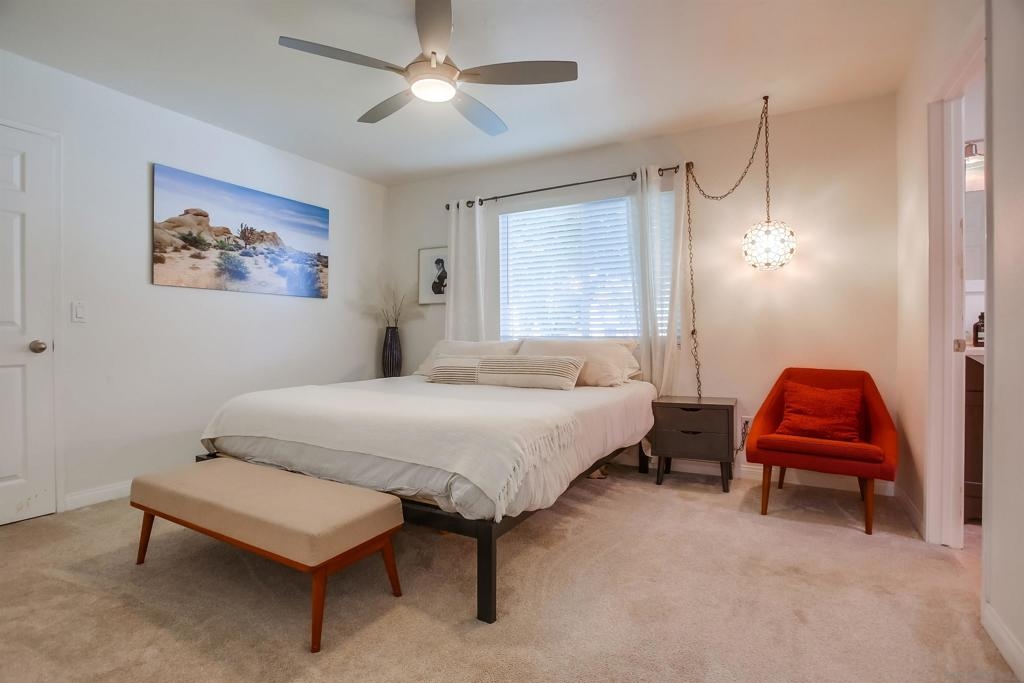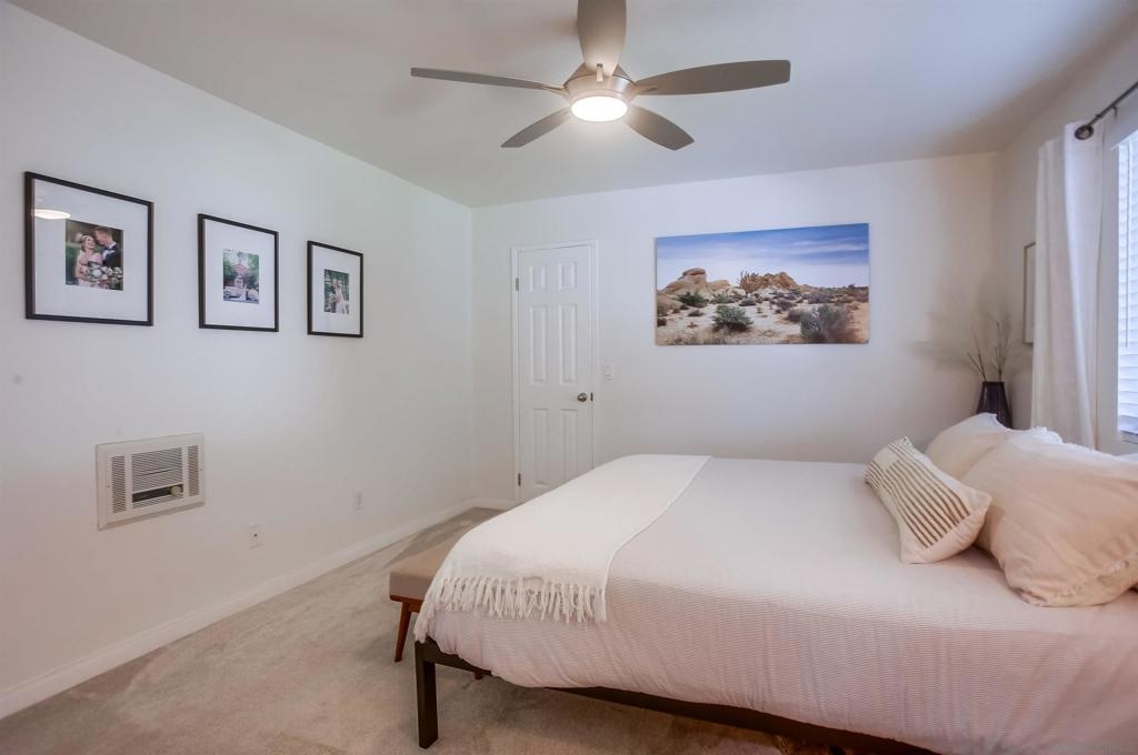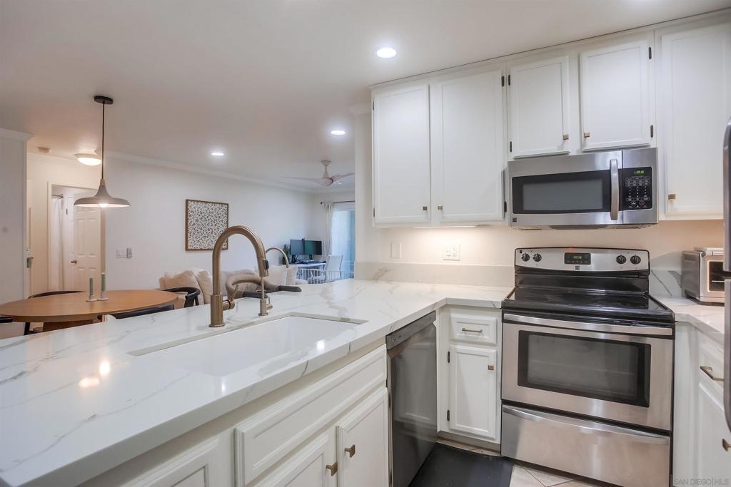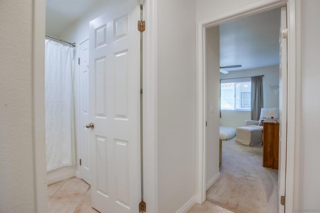 Welcome to this light, bright, and beautifully upgraded, dual master, 2 bed, 2 bath, second/top floor condo in the heart of La Costa. The home was remodeled in 2020 offering fully upgraded kitchen, tile floors, canned lighting throughout, new toilets, crown moulding, added overhead ceiling fans in every room, brand new double-pane windows and sliding door, RO water filtration system, and much more (list of upgrades provided). Each room has a large walk in closet and it's own ensuite bathroom. This unit is situated in one of the only 3 unit buildings in the complex, sharing only one wall with neighbors, living like a townhome. The unit also offers a wood burning fireplace, in-unit laundry, and a huge walk-in chefs pantry. Parking includes a 1 car detached garage directly below unit, 1 assigned parking spot (spot 107), and plenty of guest parking. Walk outside and you are directly across the street from the new La Costa Town Center, Stagecoach Park, and La Costa Canyon High School. You are about a 12 minute drive to the beach, 10 minutes to I5 freeway, and 7 minutes to the Carlsbad Forum and Omni Resort in La Costa. The gated complex offers a nice community gym, pool, spa, and sauna. Don't miss this opportunity to buy a home that offers the perfect blend of comfort, convenience, and modern upgrades, in a great neighborhood.