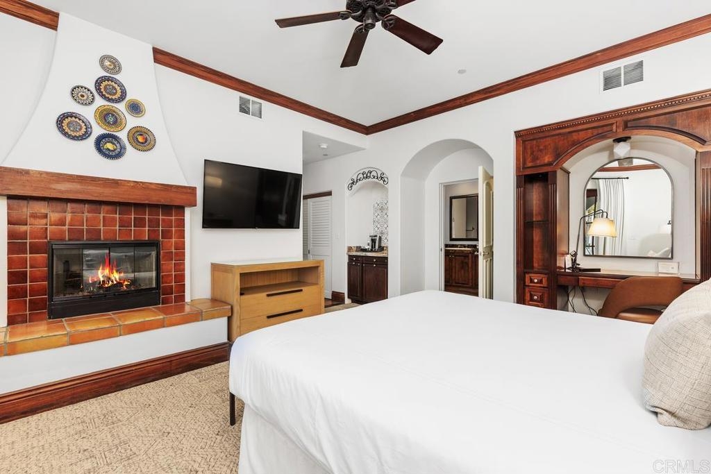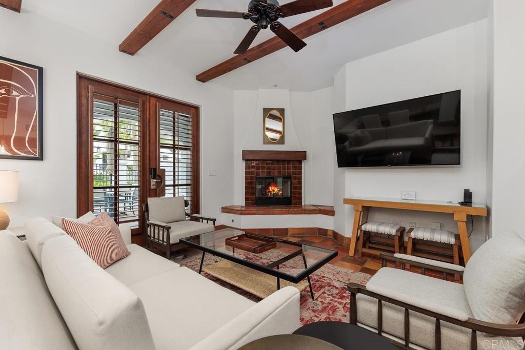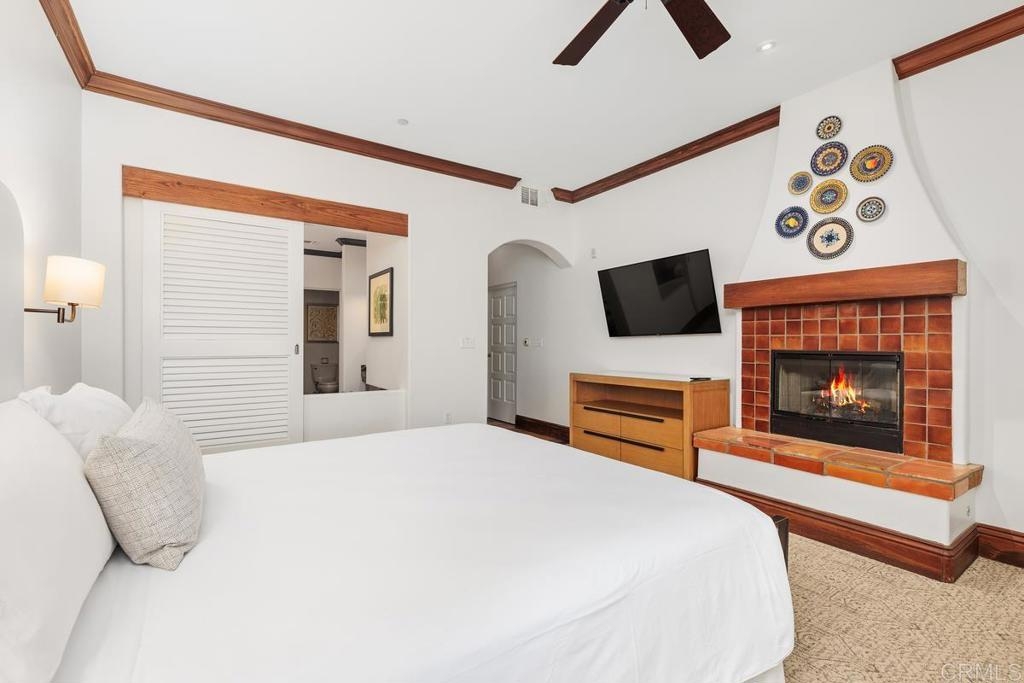Discover an elegant haven at 2006 Costa Del Mar Road, Unit 2, Carlsbad, CA. This luxurious and recently renovated ground-floor unit offers whole ownership within a prestigious resort, granting owners up to 120 days of personal use each year. $85,000 was invested creating a perfect blend of modern and traditional. With 1,810 square feet of refined living space, this home features two beautifully appointed bedrooms and three stylish bathrooms. Standout features include soaring 10 foot ceilings, three spacious patios, and cozy fireplaces in the living room and each bedroom. The residence comes fully furnished, complete with air conditioning and an in-unit washer and dryer for your comfort. The modern kitchen is equipped with stainless steel appliances, ideal for culinary creations. Enjoy resort-style amenities including a communal pool, spa, and convenient gated parking. Generate rental income through resort or self-management when not in residence. Delight in exceptional dining, shopping, and spa services just moments away.