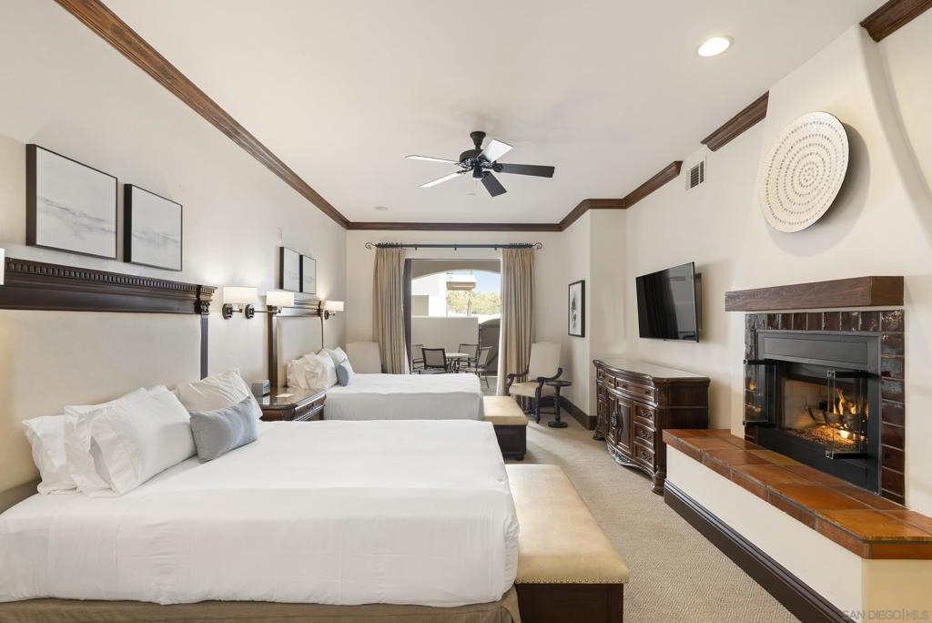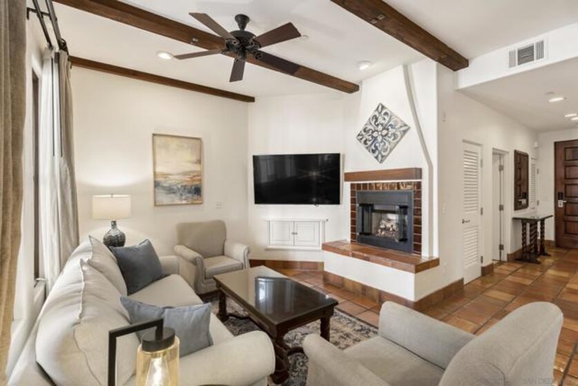 Discover the perfect blend of luxury and convenience in this stunning, newly renovated ground-floor villa at the prestigious Omni La Costa Resort & Spa. Spanning 1,856 sq. ft., this spacious 2-bedroom, 3-bathroom retreat features soaring 10-ft ceilings, an open-concept layout, and three expansive patios with direct access to the villa pool—perfect for effortless indoor-outdoor living. The beautifully updated kitchen flows seamlessly into the dining area, creating an inviting space for entertaining. The primary suite boasts a king bed, while the second suite offers two queen beds, plus a sleeper sofa in the parlor living room, comfortably accommodating up to 8 guests. Owners can use the property for personal stays up to 120 days per year while also earning rental income through resort or self-management. Additionally, villa owners have the option to stay an extra 90 days in their parlor if desired. Designed for ultimate convenience, this villa is situated in the nearest building to the lobby, providing easy access to the fitness center, pools, renowned restaurants, and the iconic Omni La Costa Spa. Additionally, the unit includes two reserved parking spaces for added ease and accessibility. Don't miss this exceptional opportunity to own a piece of luxury in one of Southern California's most iconic resorts!