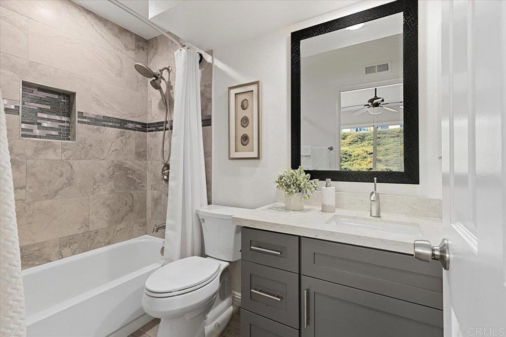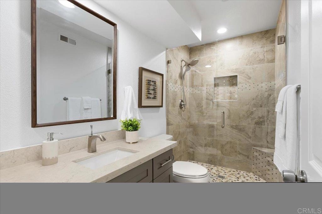 Welcome to your slice of paradise at the Las Playas community in Carlsbad! Just a mile from the beach, this adorable 2 bedroom, 2.5-bath, townhome embodies the essence of coastal living in south Carlsbad where you'll enjoy all the pleasures of seaside living, including great shopping, top-rated restaurants, parks, and sought after Carlsbad schools. Every space in this home has been remodeled with meticulous attention to detail. You will love the luxury vinyl planking throughout, offering both durability and style. Updated dual pane windows and sliders create a bright and airy space. Indulge your culinary desires in the upgraded kitchen featuring contemporary new cabinetry, counters, backsplash and new appliances. Upstairs features two primary bedrooms, each boasting its own en-suite bathroom for ultimate comfort and privacy. Plus, a convenient half bath downstairs adds to the functionality of this thoughtfully designed abode. The west-facing orientation ensures lovely afternoon light. Step outside to a private courtyard with pavers and a new fence, perfect for outdoor gatherings. It gets better...Next to the court yard is your own private two car garage! Experience resort-style amenities right at your fingertips, including tennis courts, pool, and spa making every day feel like a vacation. Don't miss out on this opportunity to embrace the quintessential coastal lifestyle – schedule your private tour today!