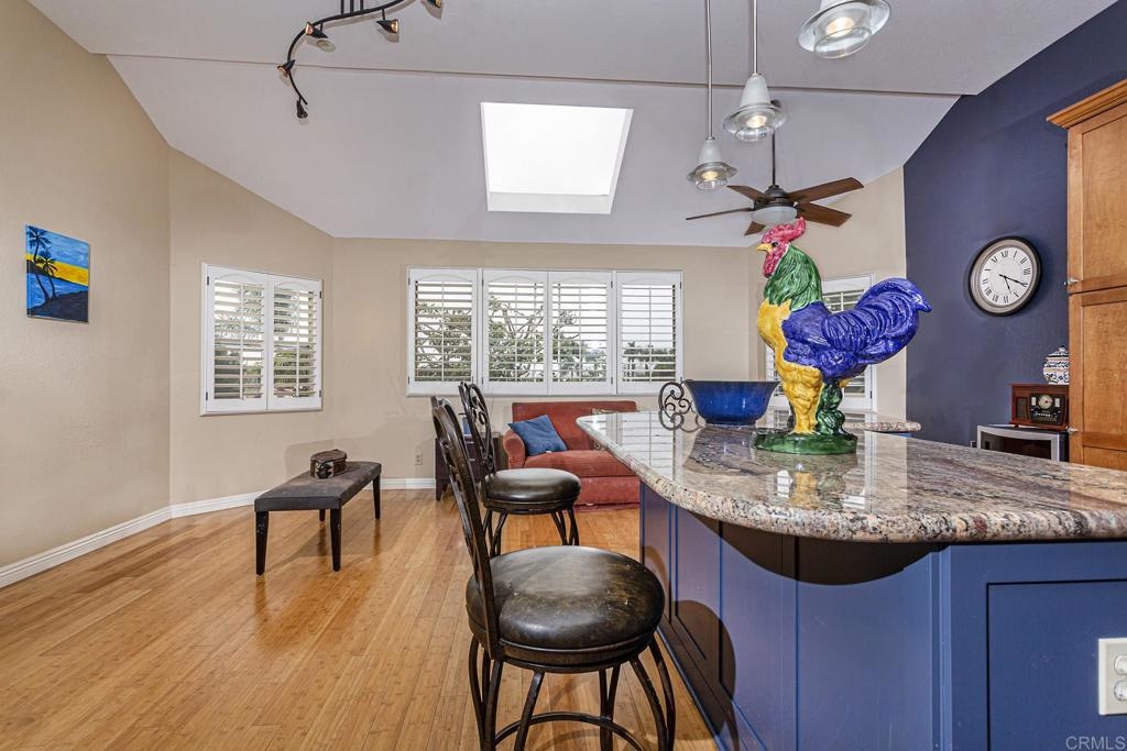 Comfortable townhome west of I-5. Extensively remodeled approx. 5 years ago. Three floors. Entry level bdrm does not have a closet, could be used as an office/studio. Two bedrooms with private baths on the 2nd level, including closet laundry in hall. Third level boasts 12 foot ceilings, light and open gourmet kitchen with generous granite island and higher end, stainless steel appliances, art lighting and designer paint colors. The 4th bedroom is on this top level, where there is also a powder room. Entire unit has bamboo flooring. All bathrooms have been tastefully updated. 2nd and 3rd levels open to small decks and are connected by a spiral staircase. There is a connected, oversize 2 car garage with room for storage. Walk or bike ride to Village for restaurants, shops, train station and beach. Complex has community sun-bathing deck and spa.